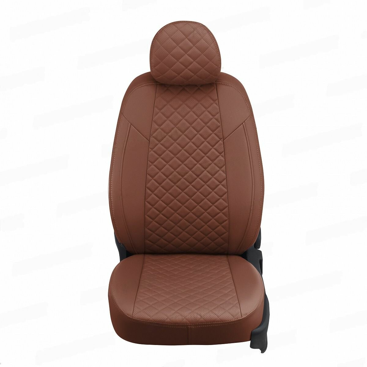 Чехлы на Фольксваген Тигуан 2 поколение (2017-2024) комплектация Комфортлайн, Хайлайн со столиками, без столиков для сиденья авто, Пилот, Экокожа ромб, Шоколадный