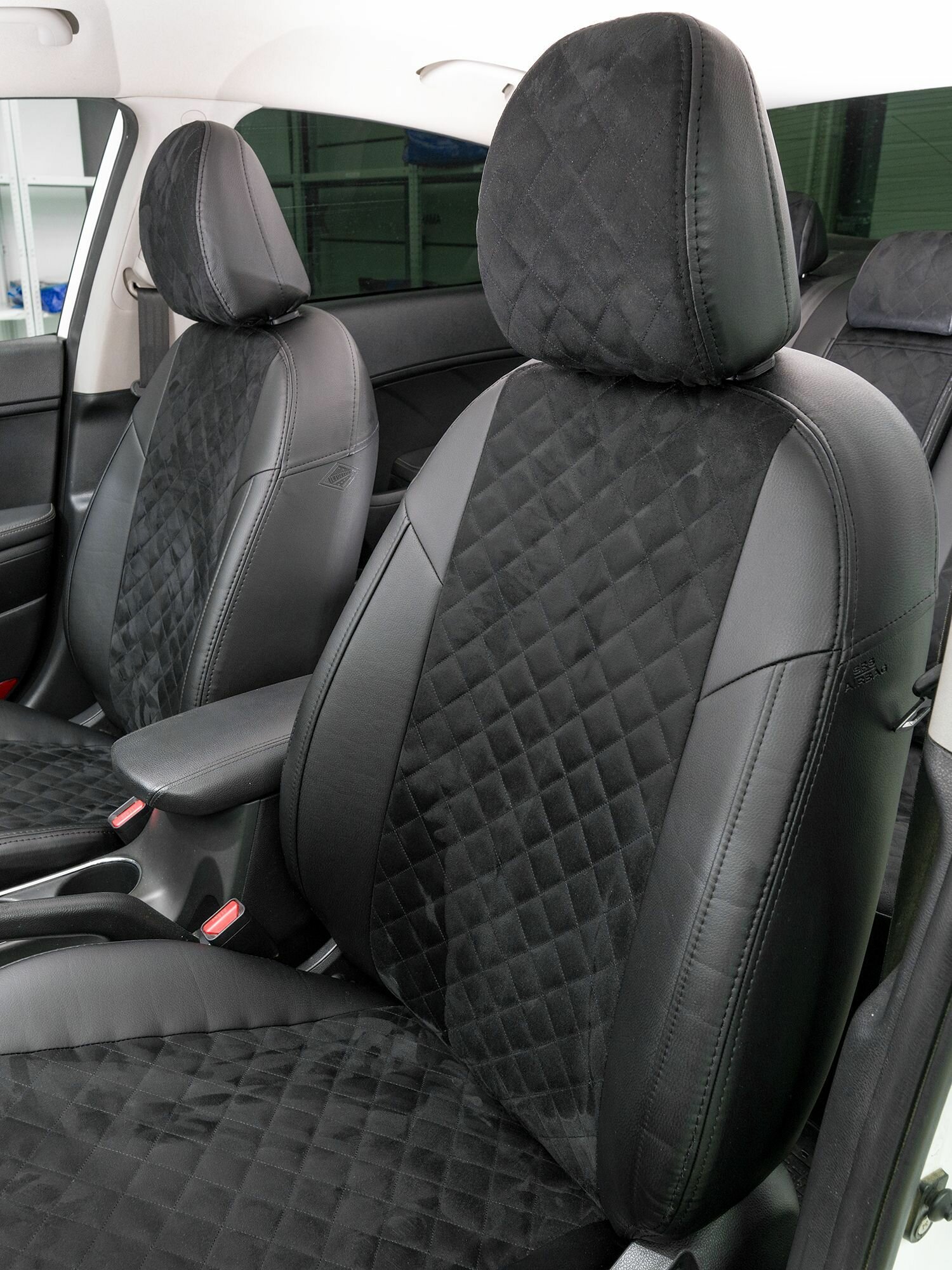 Комплект чехлов Автопилот Алькантара ромб KIA Cerato III Sd (classic) с 13-20г. Черный + Черный