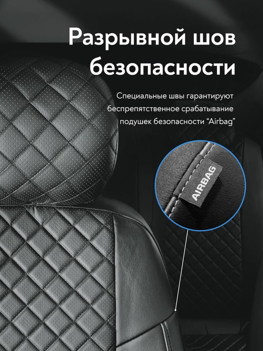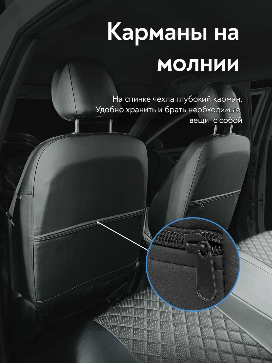 Чехлы на сидения для Мазда 3 (Mazda III) с 2004 - 2010 г. в. (спинка заднего сидения 40/60, раздельная) из экокожи, ромб, черные интересное: