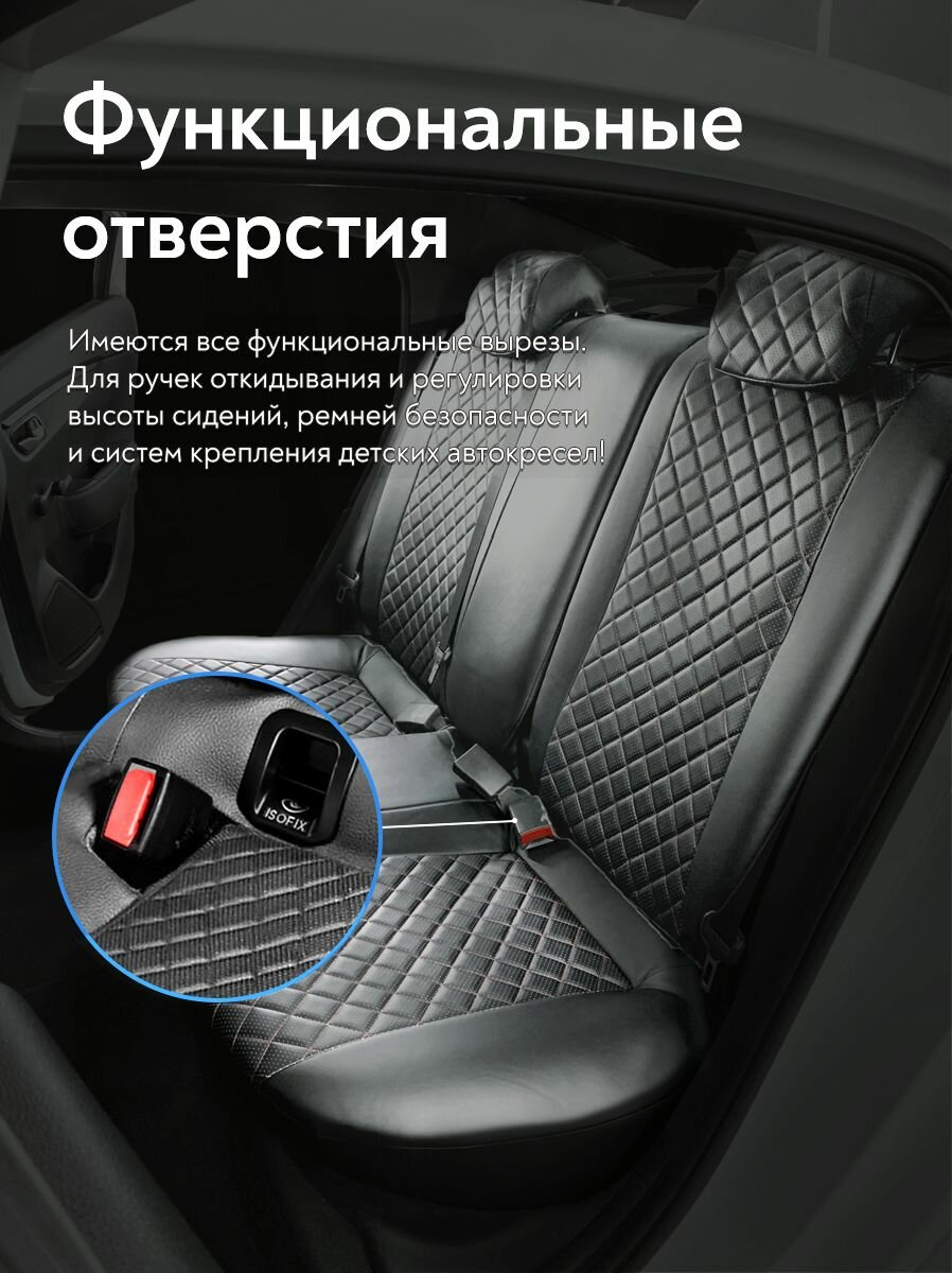 Чехлы на сидения для Мазда 3 (Mazda III) с 2004 - 2010 г. в. (спинка заднего сидения 40/60, раздельная) из экокожи, ромб, черные с красной строчкой