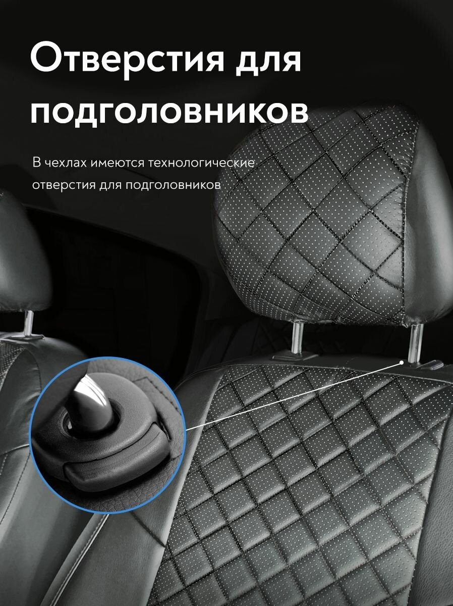 Чехлы на сидения для Мазда 3 (Mazda III) с 2004 - 2010 г. в. (спинка заднего сидения 40/60, раздельная) из экокожи, с перфорацией, черные