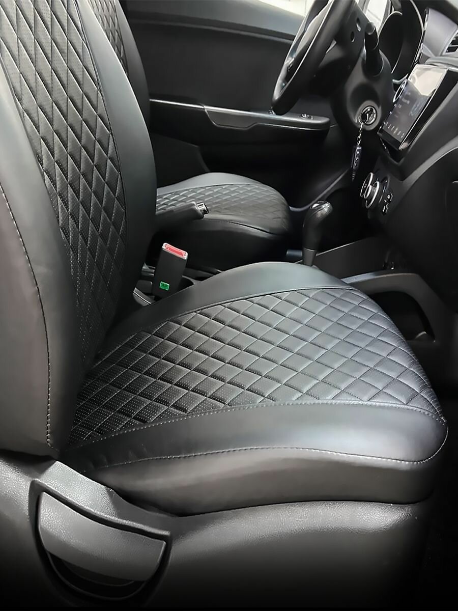Комплект каркасных чехлов 5D CarFashion Consul Plus, чёрные, отстрочка серая
