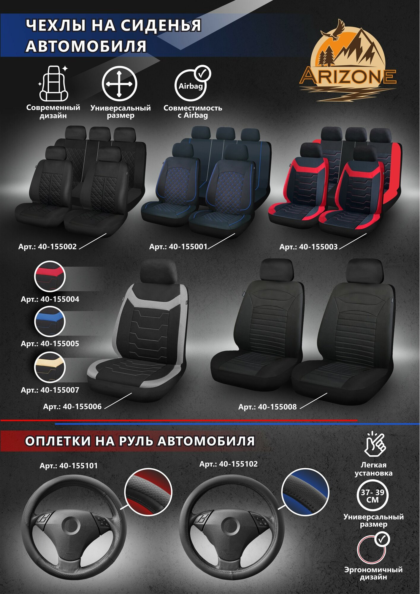 Чехол универсальный на переднее автомобильное сиденье Arizone 40-155004 интересное: