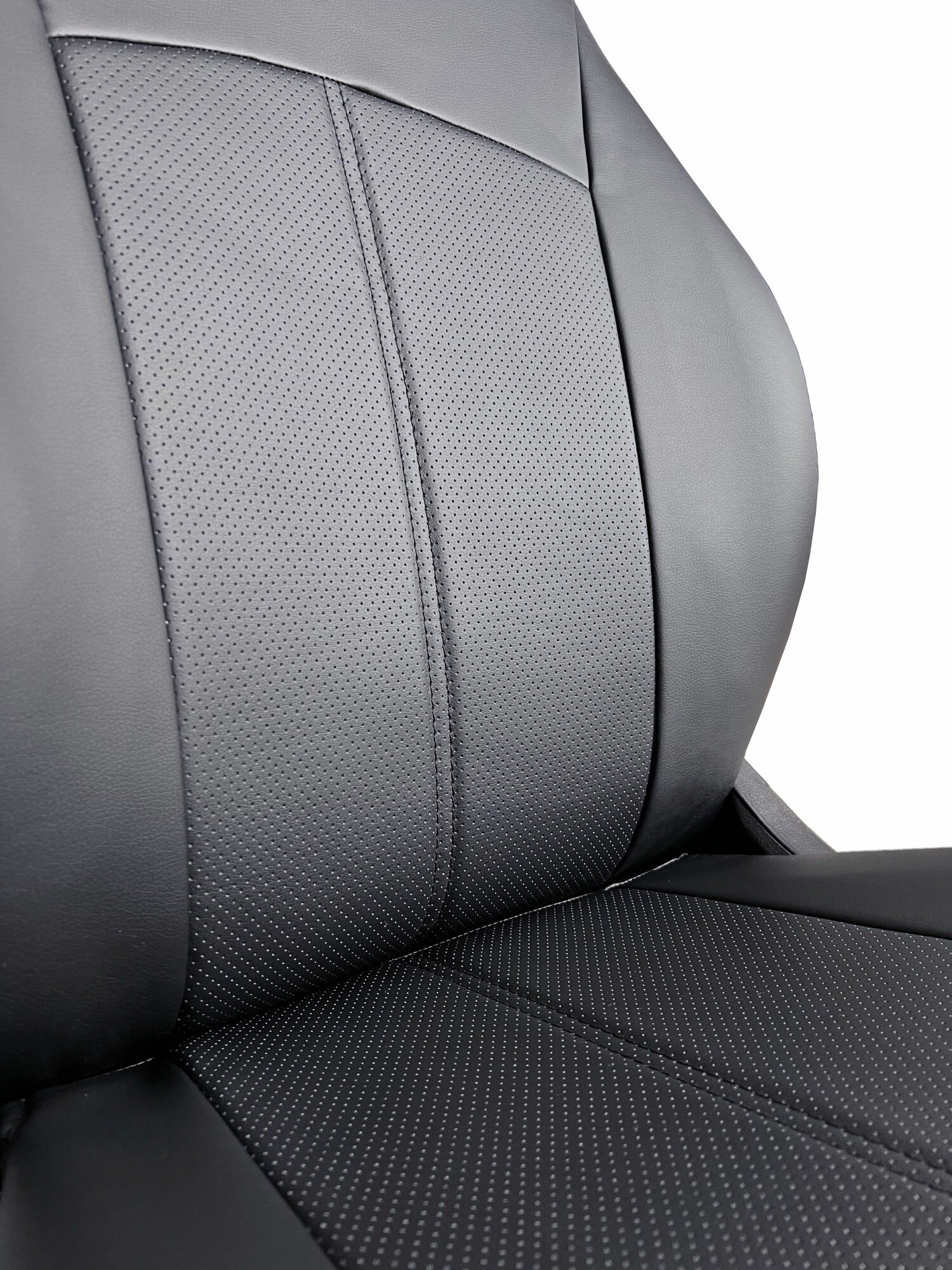 Комплект каркасных чехлов 5D CarFashion Consul Plus, чёрные, отстрочка серая