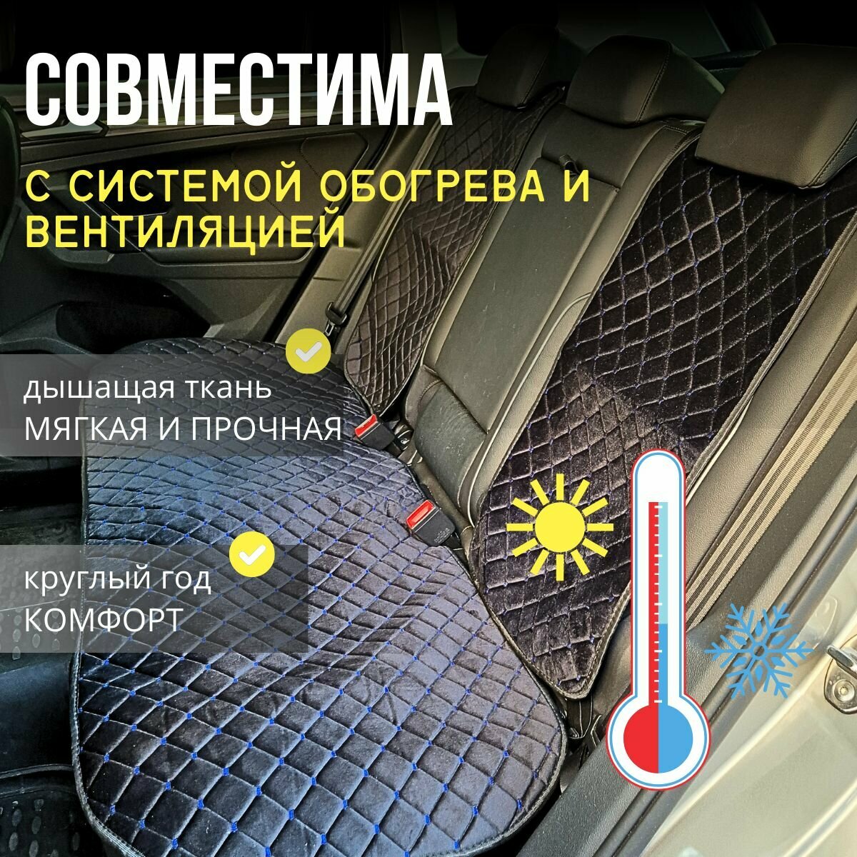 Купить Накидки для БМВ Х6 М (2019 - 2024) внедорожник 5 дверей / BMW X6 M на весь салон, ромб, Велюр, Черный с синей строчкой