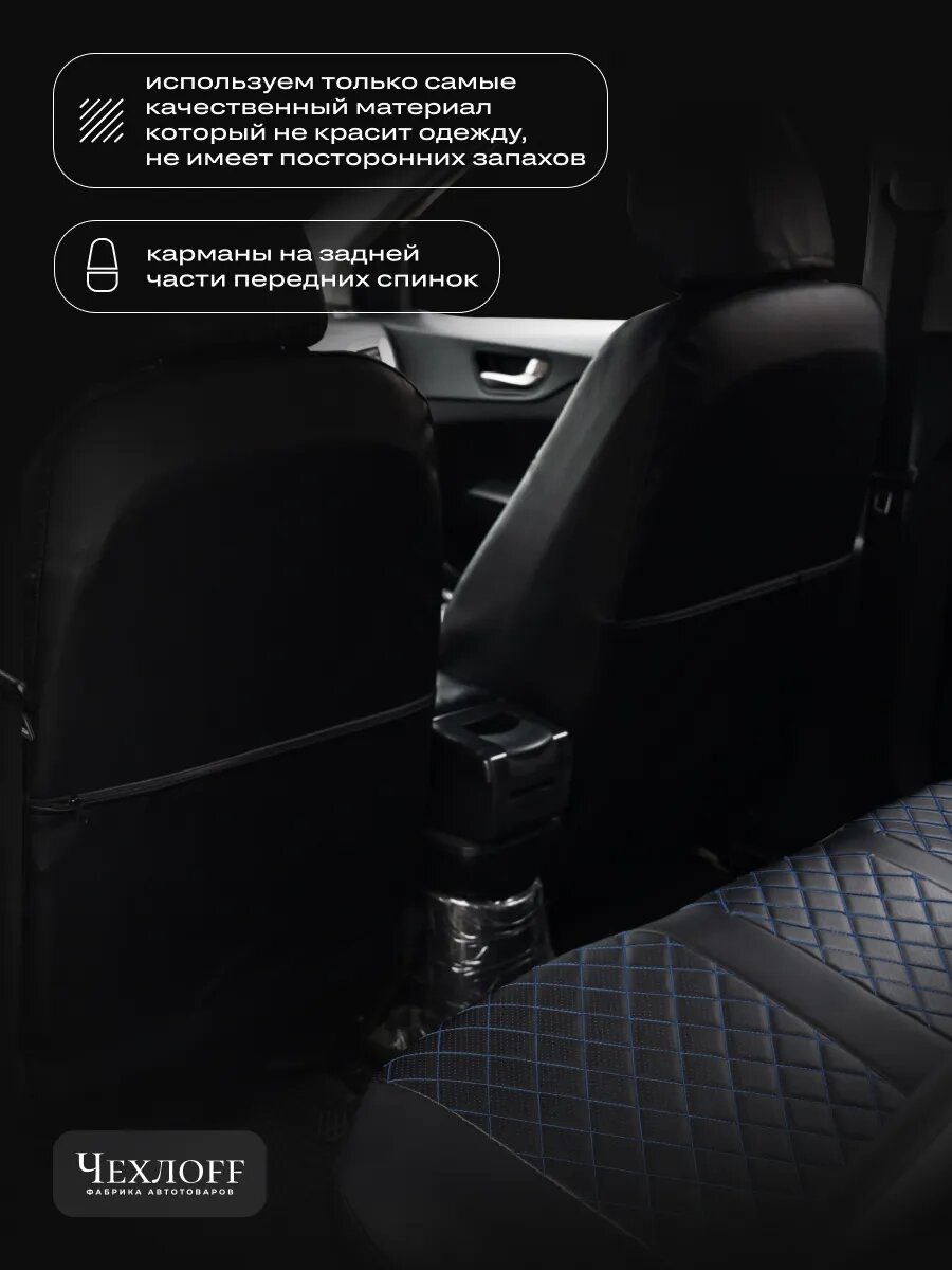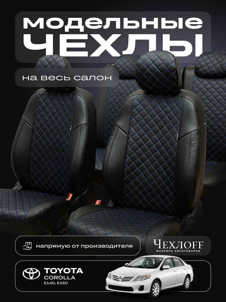 Купить Чехлы ЧехлоFF для Toyota Corolla E140/E150, экокожа, чёрно-синие, передние/задние, комплект