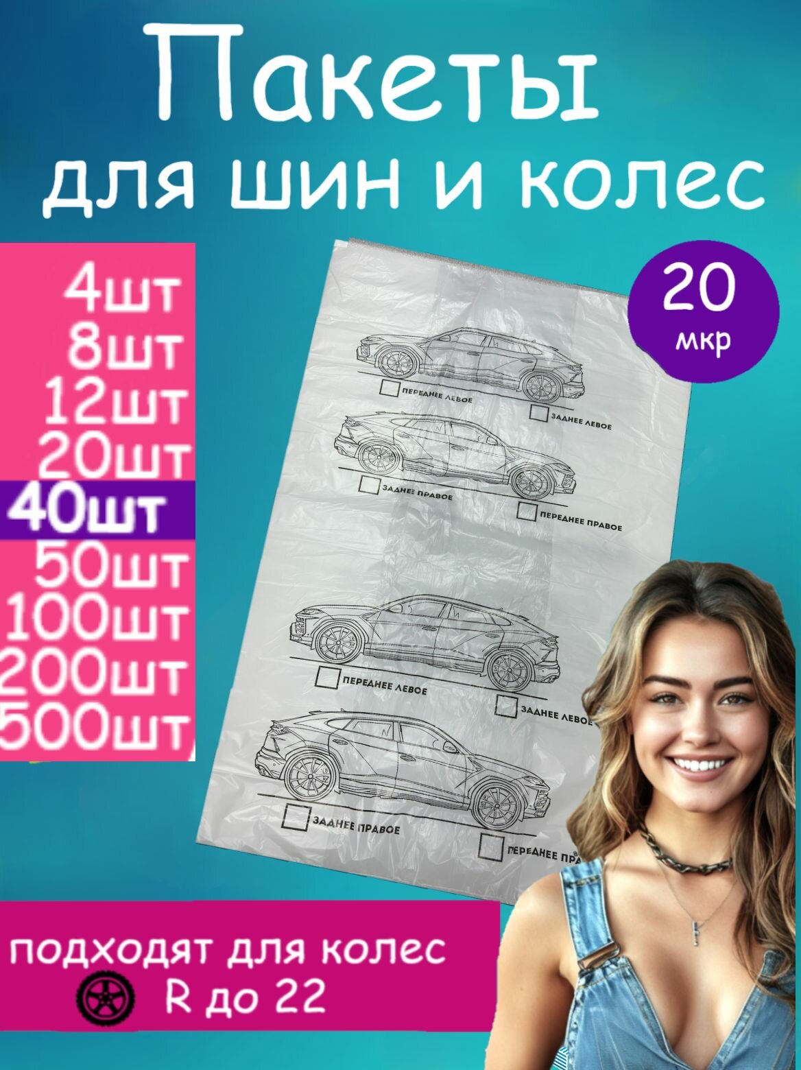 Купить Пакеты для колес и шин, черный рисунок, 40шт.