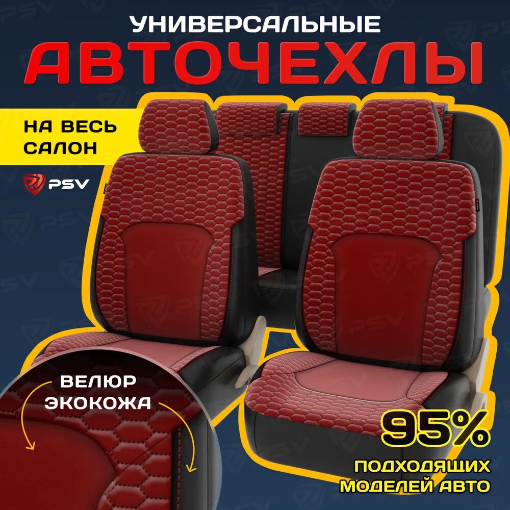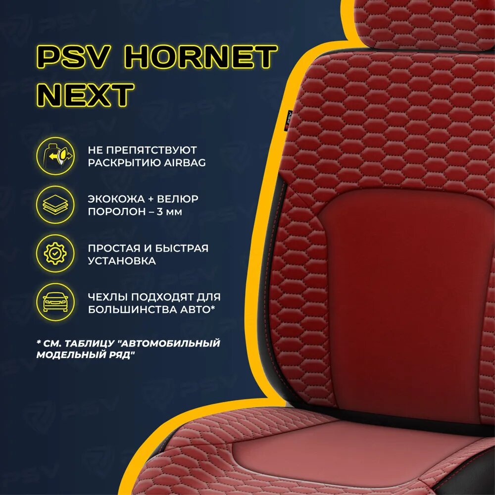 Чехлы PSV Hornet Next экокожа/велюр терморомб соты черно-красные интересное: