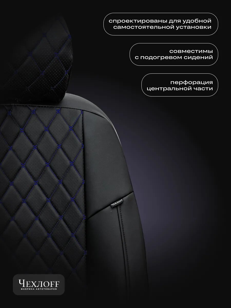 Чехлы ЧехлоFF для Солярис 2, экокожа, чёрно-синий, передние/задние, комплект интересное:
