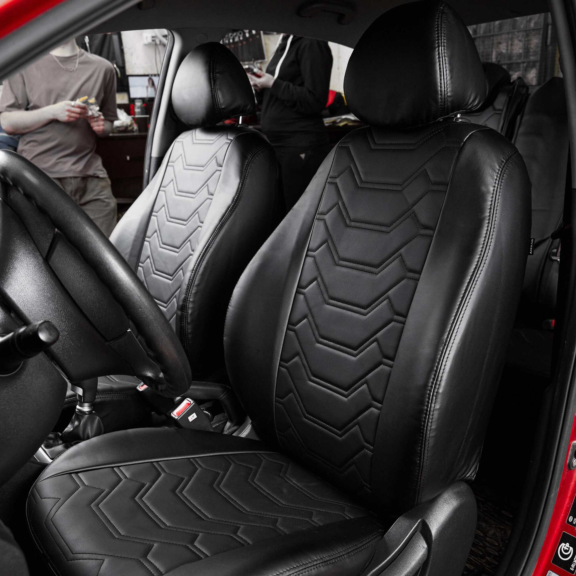 Комплект каркасных чехлов 5D CarFashion Consul Plus, чёрные, отстрочка серая