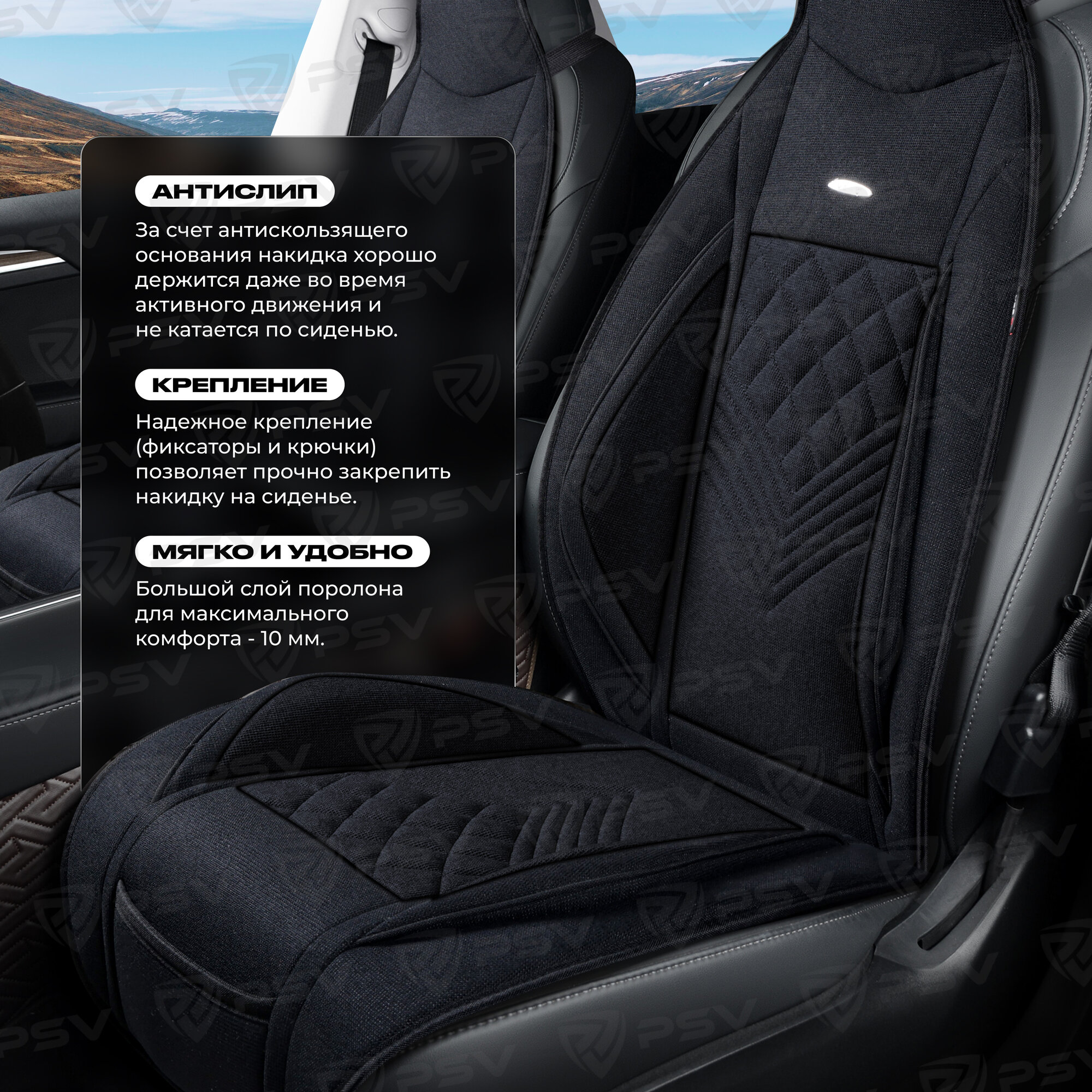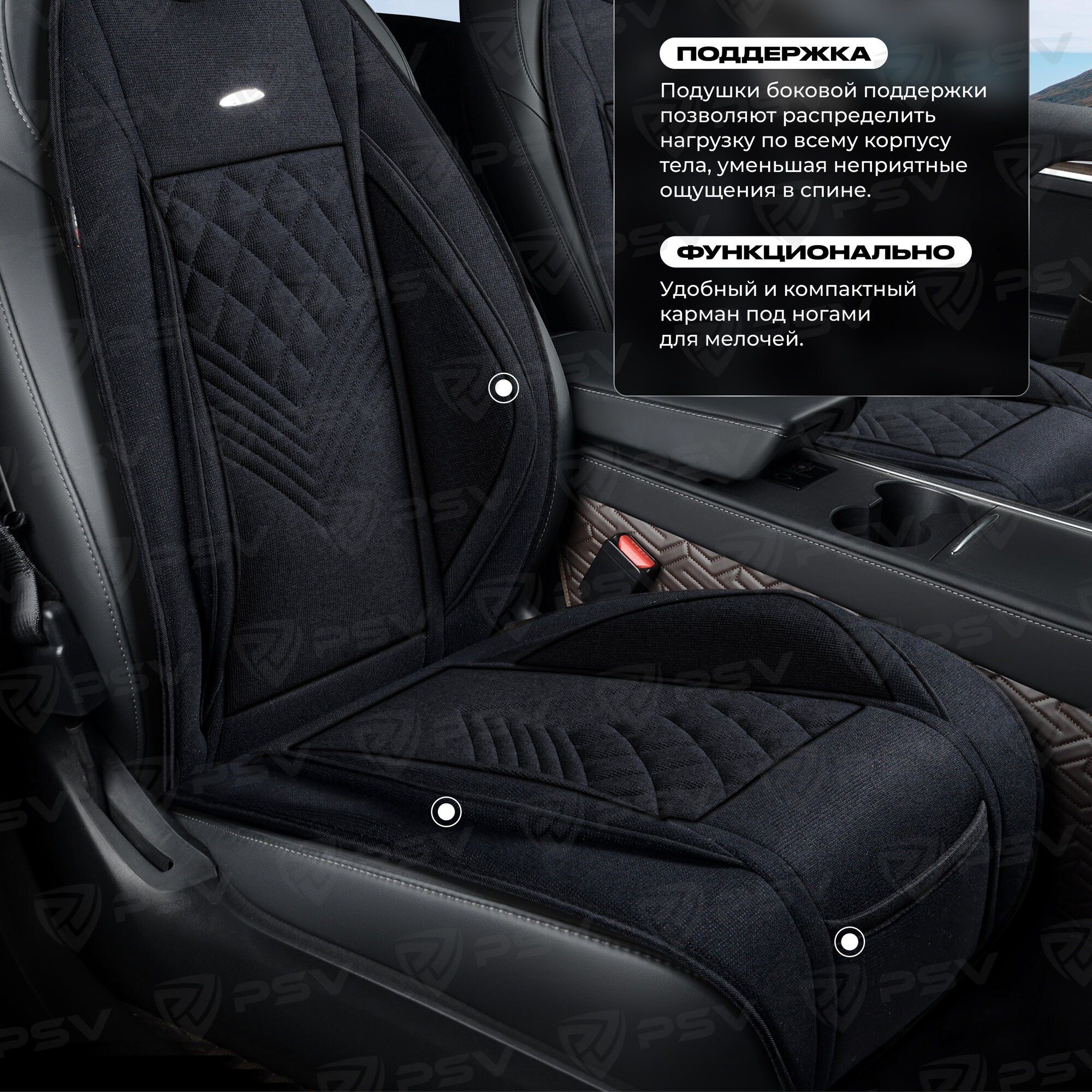 СохранитьНакидка на сиденье универсальная PSV Avrora FRONT (Черный), на переднее сиденье, 1 штука интересное: