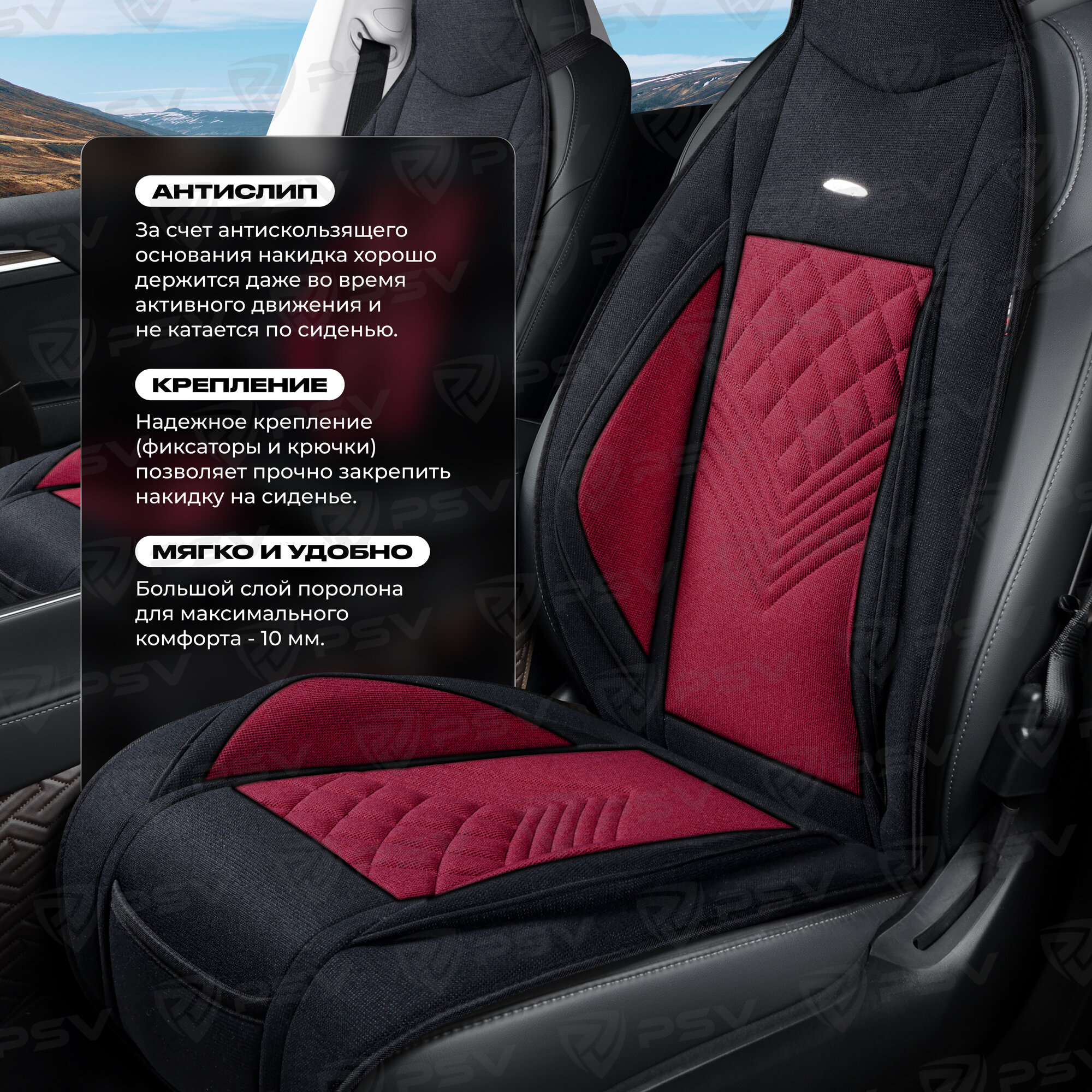 СохранитьНакидка на сиденье универсальная PSV Avrora FRONT (Черно-Красный), на переднее сиденье, 1 штука интересное:
