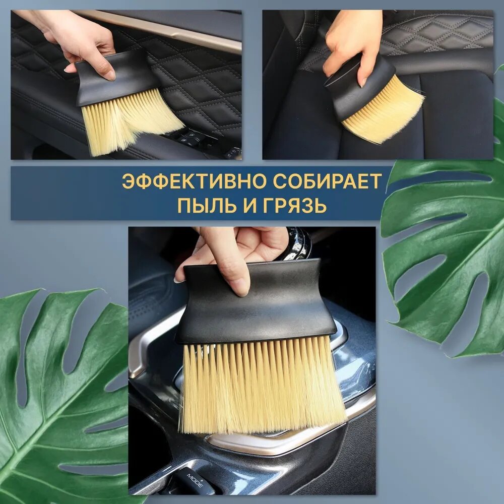 Щетка-кисть, для детейлинга, для салона автомобиля, пластик, бежевая интересное: