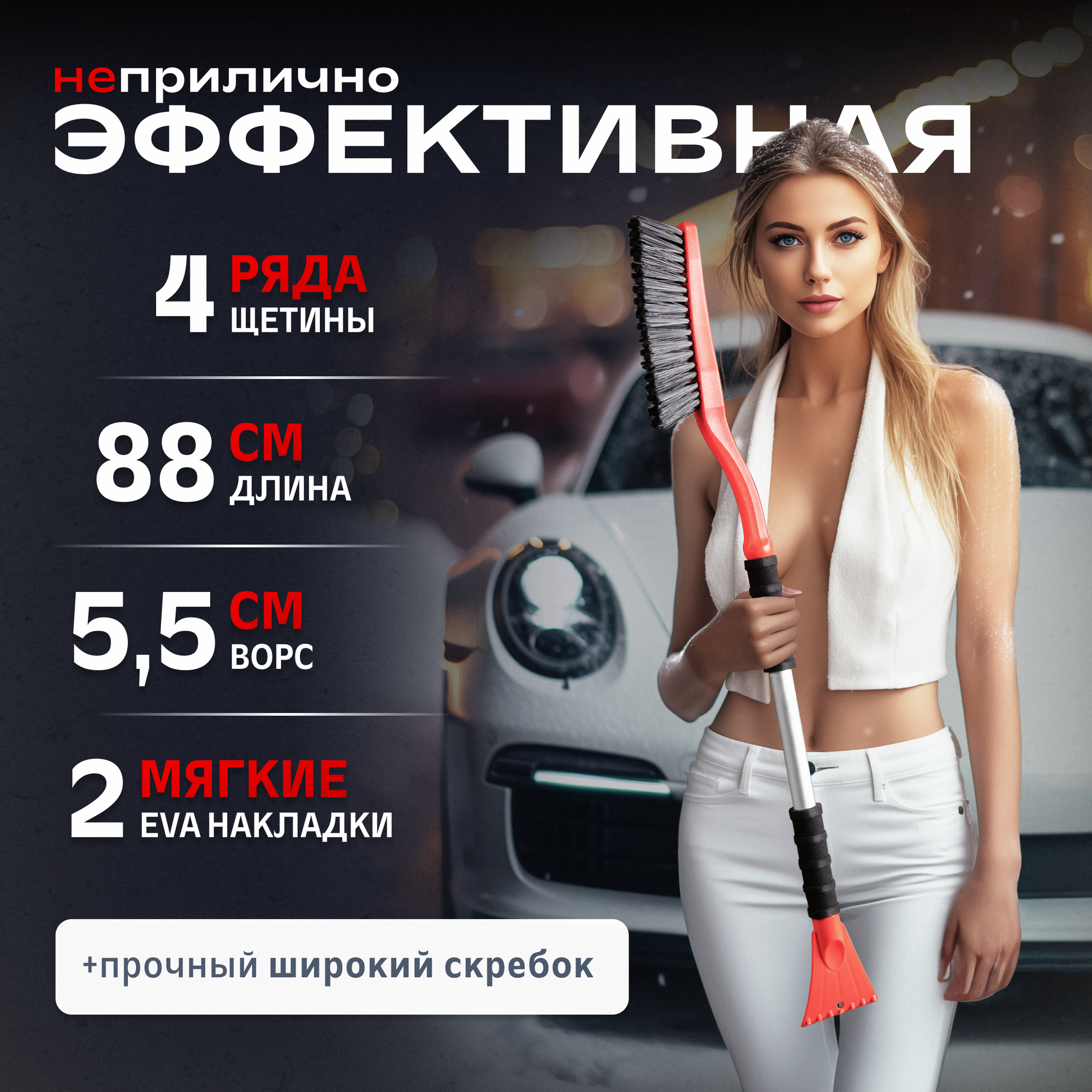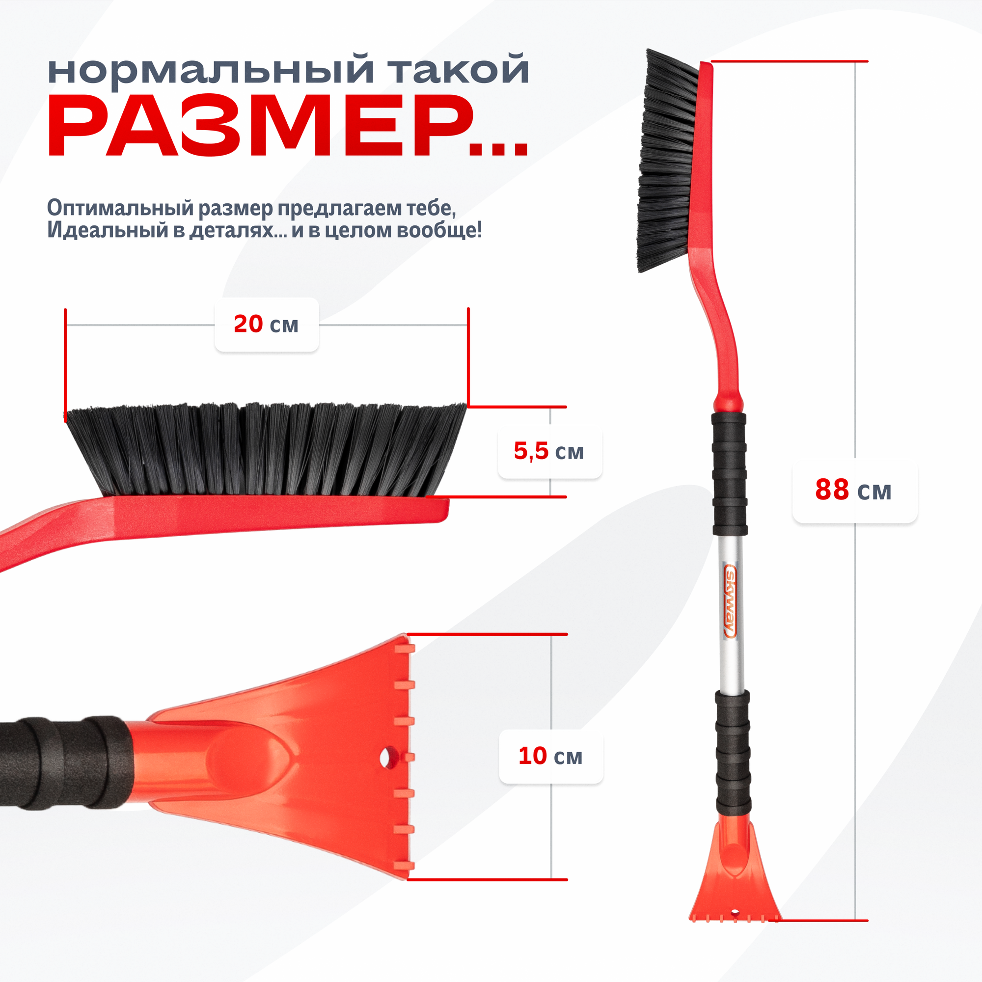 Щетка для машины от снега со скребком 88 см SKYWAY автомобильная, S07801023 интересное: