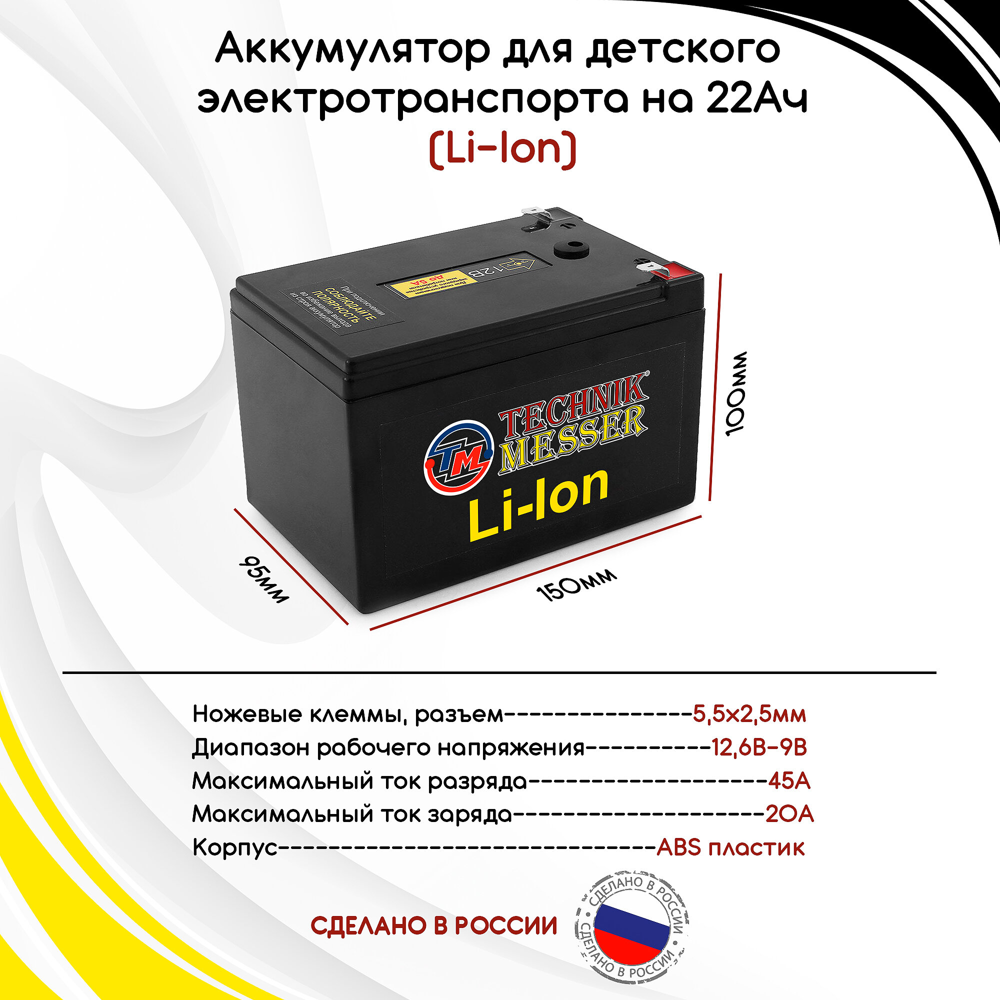 Аккумулятор 12В 22 Ач TECHNIK MESSER для детского электромобиля + ЗУ интересное: