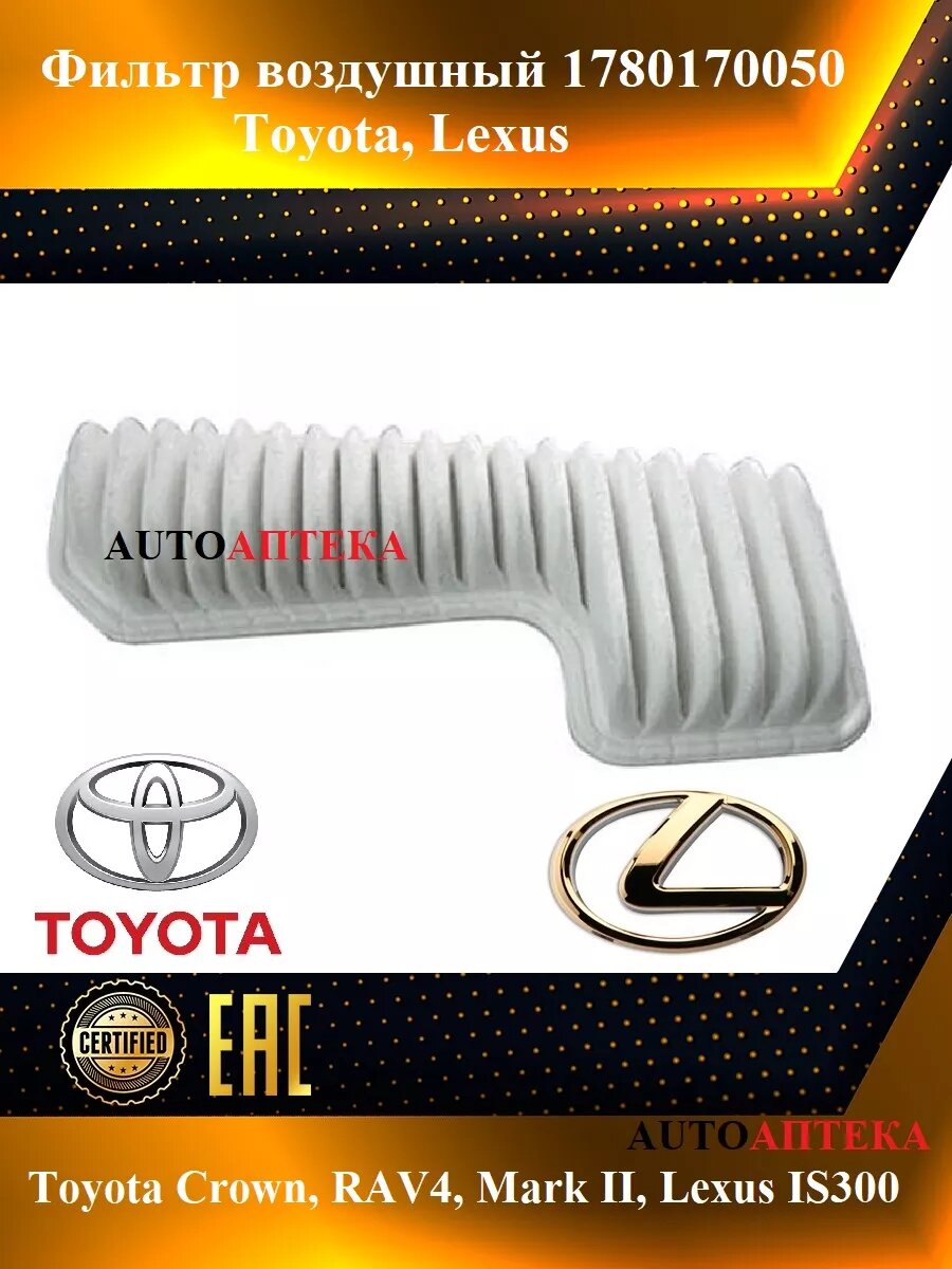 Фильтр воздушный 1780170050 для автомобилей Lexus, Toyota - IS200, IS300, Altezza, Crown, Mark II, RAV4, Verossa и др. интересное:
