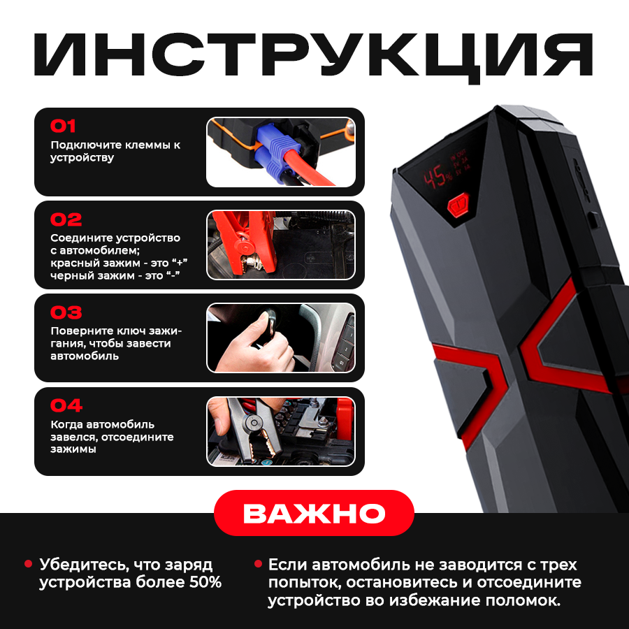 Ниже Вы можете прочитать отзывы на Пусковое зарядное устройство для автомобиля, jump starter для авто, автостарт для автомобильного аккумулятора с фонарем, ознакомится с подробными характеристиками, посмотреть интересные обзоры и фотографии на Пусковое зарядное устройство для автомобиля, jump starter для авто, автостарт для автомобильного аккумулятора с фонарем.