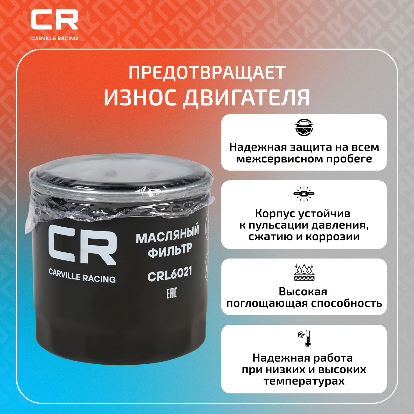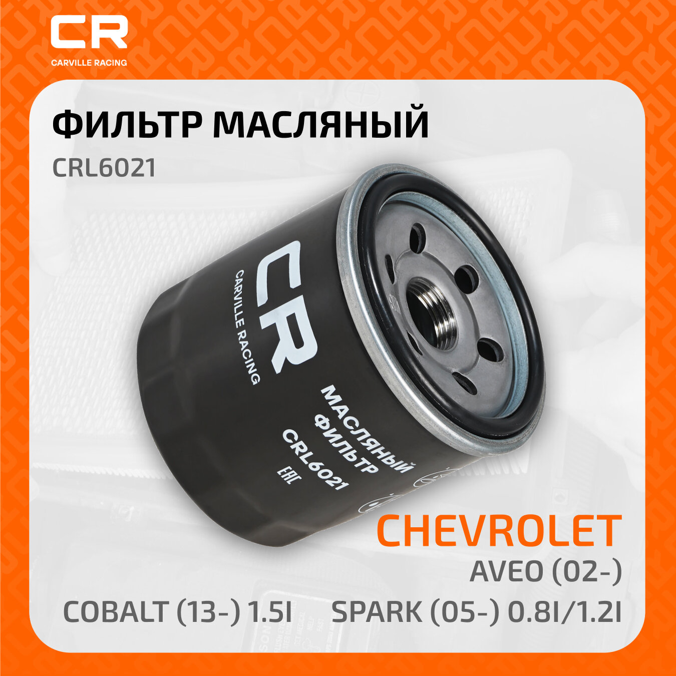 Купить Фильтр масляный для автомобилей Chevrolet Aveo (02-)/Spark (05-) 0.8i/1.2i/Cobalt (13-) 1.5i CRL6021 Carville Racing