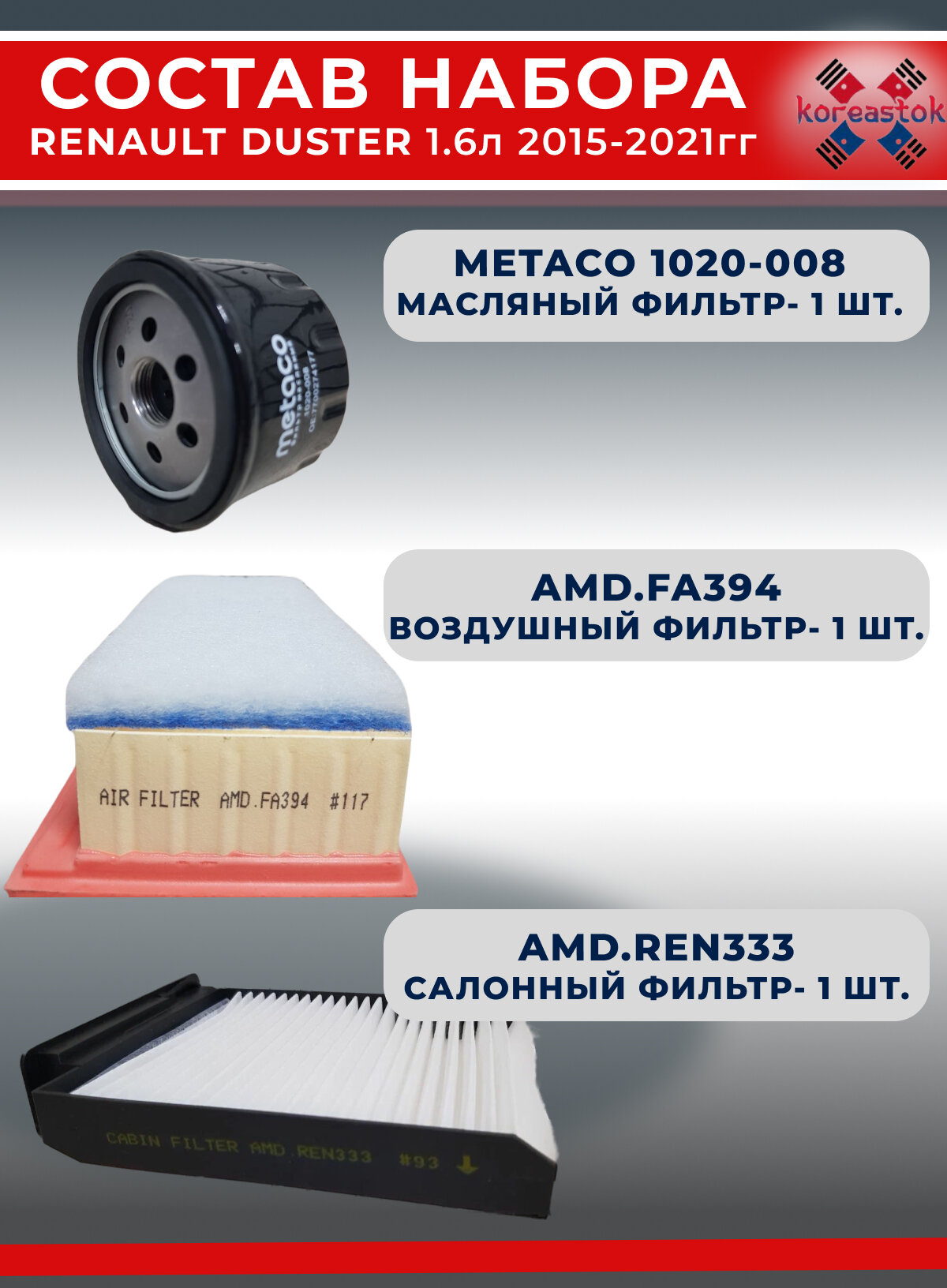 Купить Набор фильтров для техобслуживания Renault Duster 1,6 л, 2015 - 2021