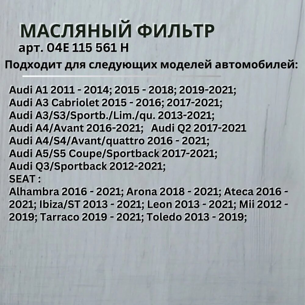 Масляный фильтр VOLKSWAGEN арт. 04Е 115 561 Н интересное: