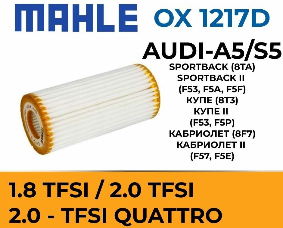 Масляный фильтр для Audi a5 1.8 TFSI ауди а5 2.0 quattro, номер автозапчасти vag 06L115562B Mahle OX 1217D, MD-745 интересное: