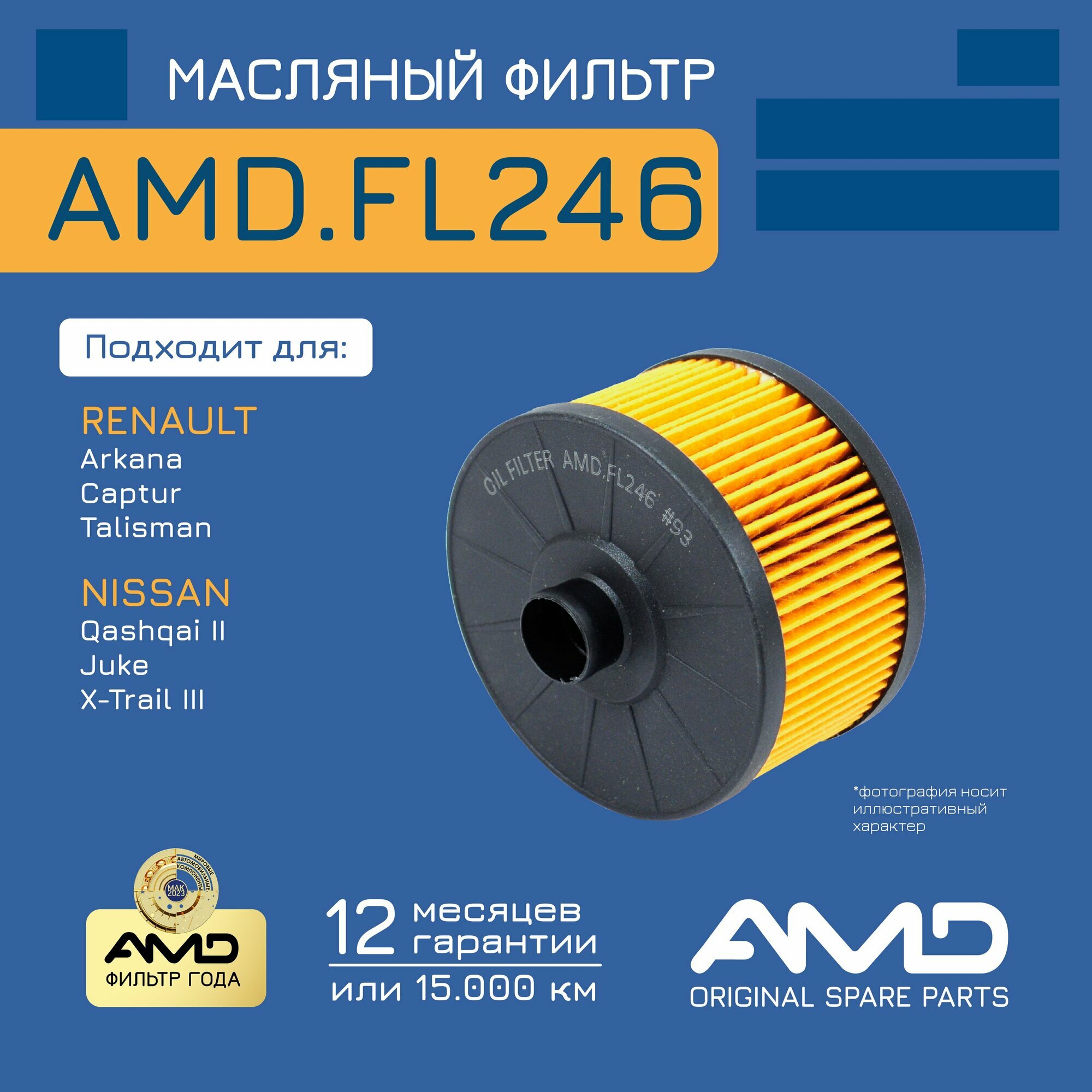 Фильтр масляный 152095084R AMD. FL246 для RENAULT Arkana NISSAN Qashqai II J11E интересное: