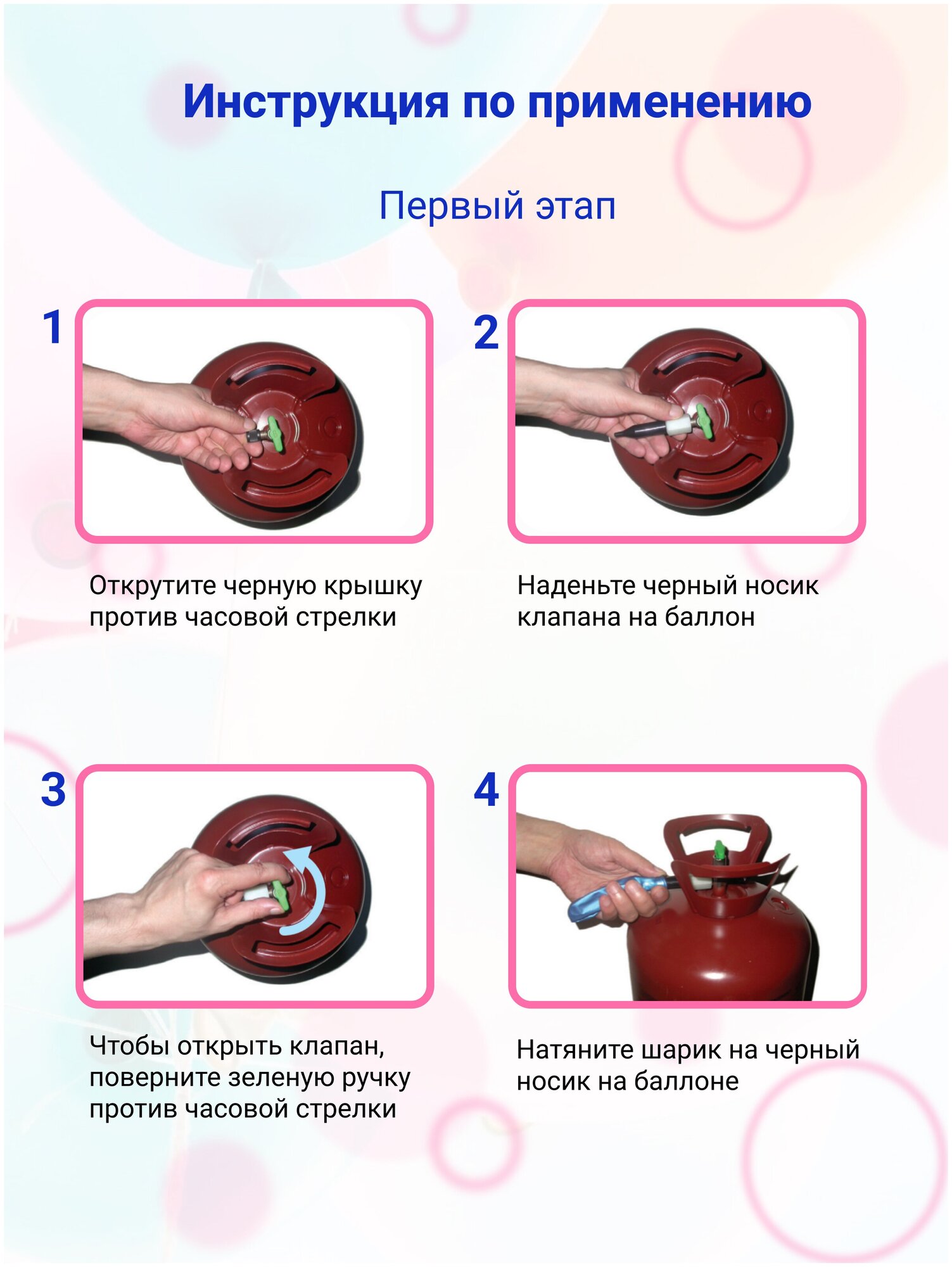 | Плюсы: | Хороший баллон. На три праздника уже хватило и пока не закончился. Надували и латексные, и фольгированные шары. |