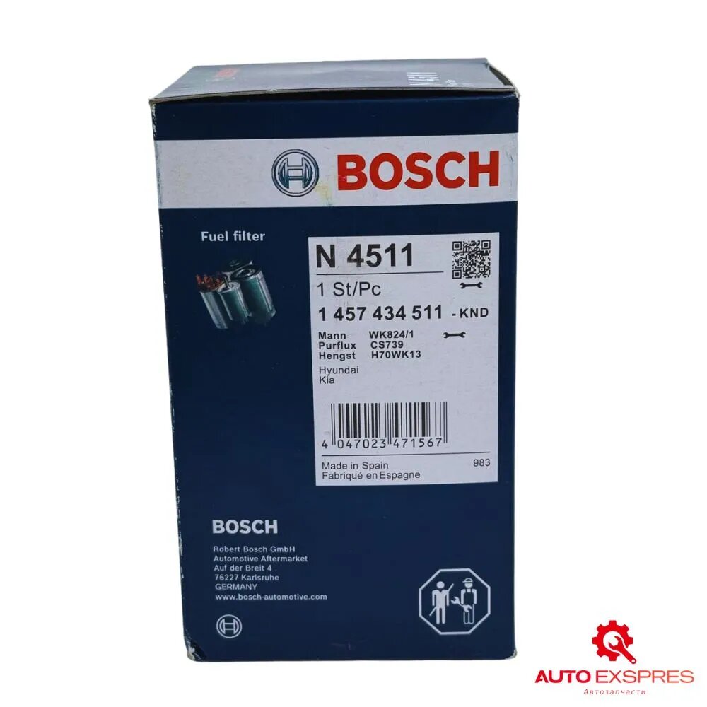 Фильтр топливный BOSCH 1457434511 Подходит для: (Hyundai) Elantra i10 i20 i30 ix35 Porter Tucson (Kia) Bongo Ceed Sportage Soul RIO интересное: