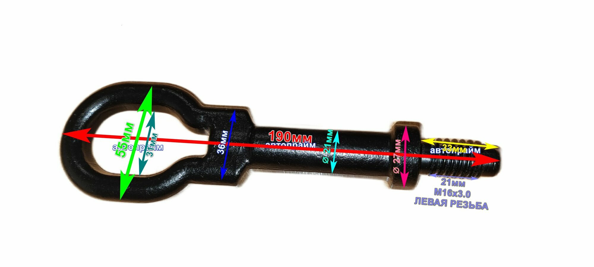 Крюк буксировочный Перед монтажом очистить резьбу! М16 х 3.0 левая резьба Focus 2 Фокус 3 Mondeo Fiesta Astra H Aveo T300 RU68687 интересное: