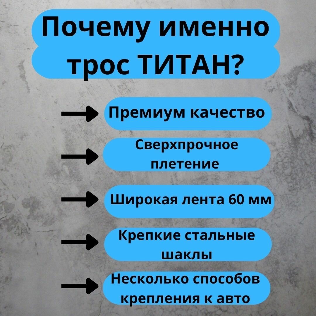 ТРОС буксировочный ТИТАН с шаклами, 12т, 5м, ленточный, 2 шакла, ПП, 12тн, 5,6х60, прямой, сумка интересное: