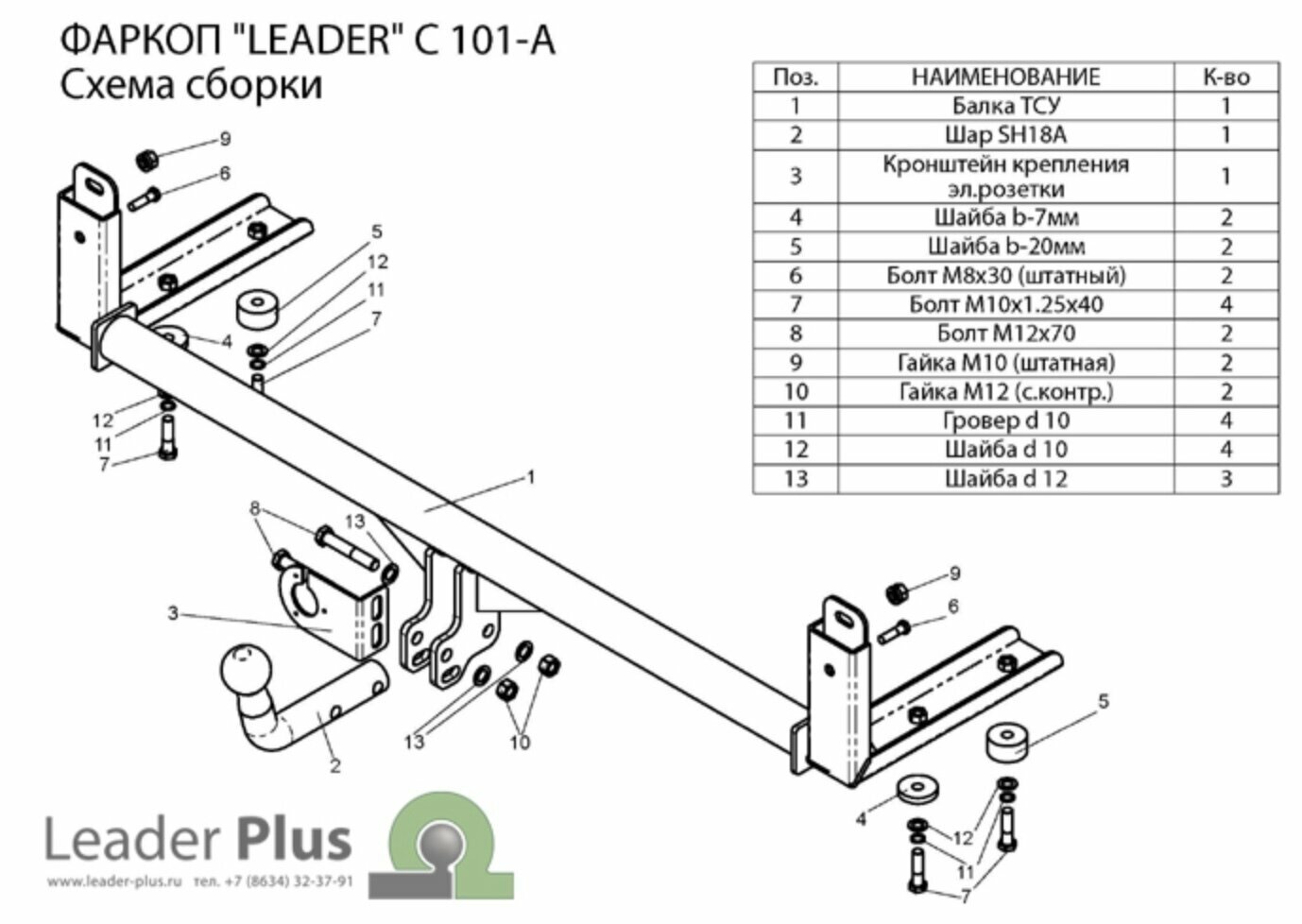 Фаркоп C101-A Лидер плюс для CHERY AMULET (хетчбек) 2003- (без электрики) интересное: