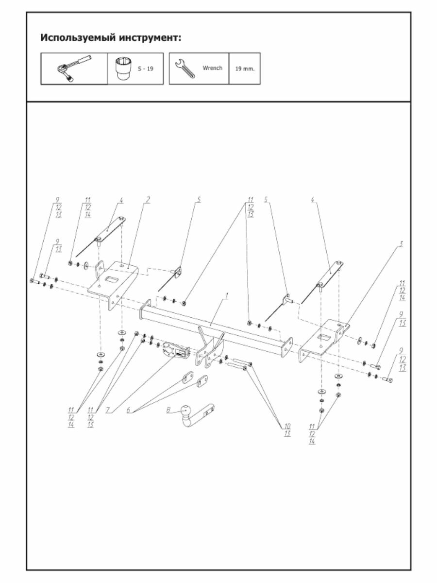 Съемный фаркоп под квадрат 32х32 мм, шар ТСУ: 50 мм, палец d 12 мм, ножка шара 19 мм