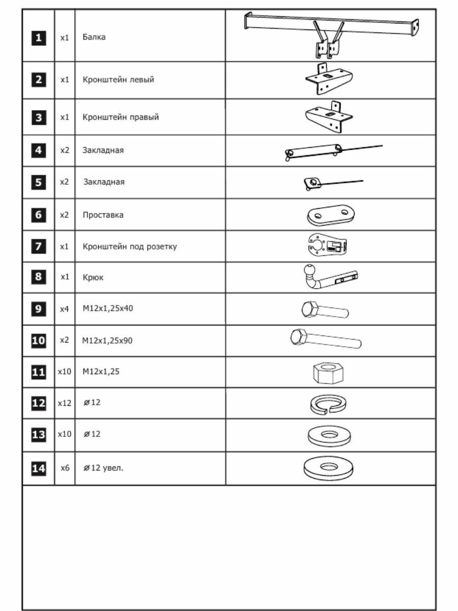 | Тип комплектующей фаркопа | крюк (шаровой узел) |