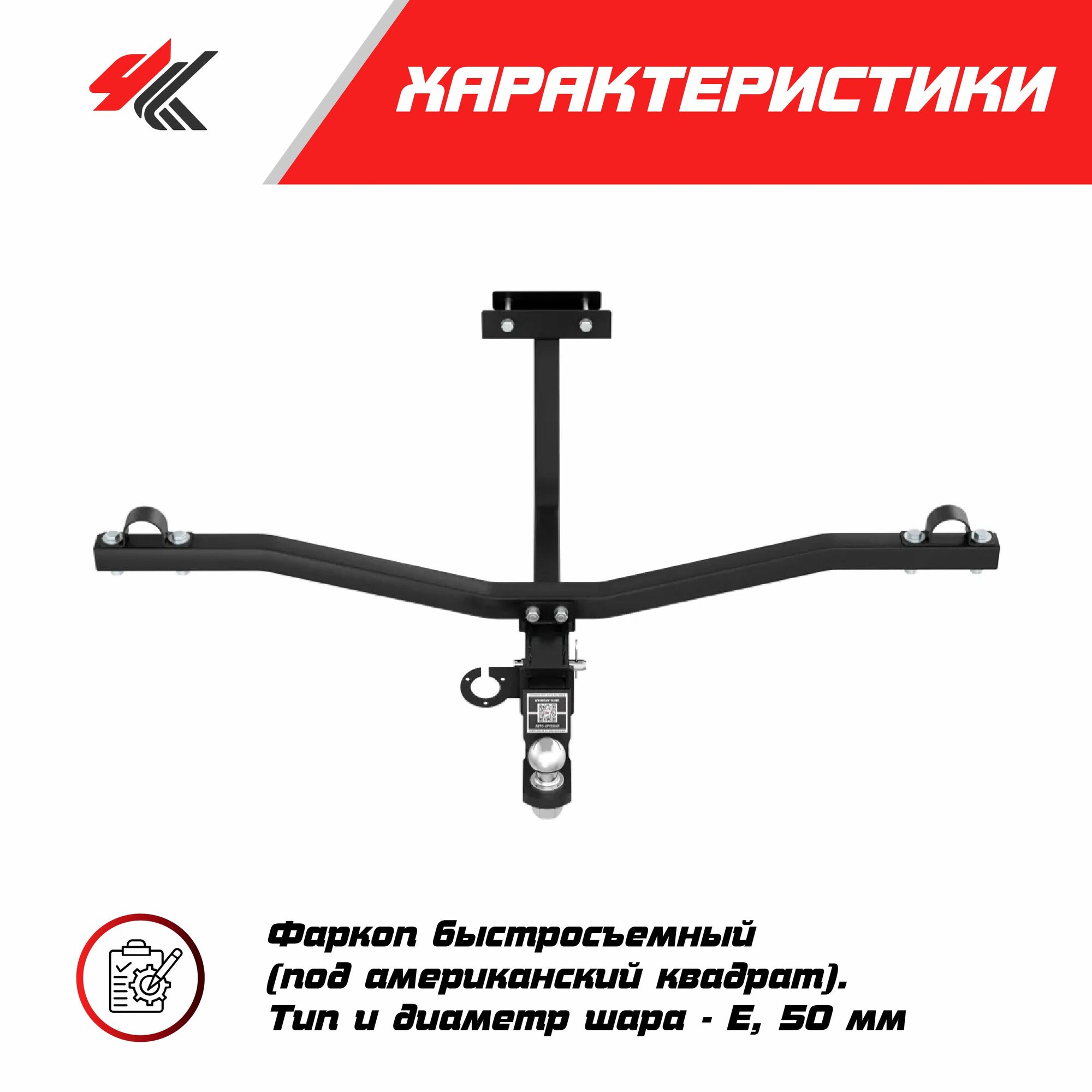 Съемный фаркоп под квадрат 32х32 мм, шар ТСУ: 50 мм, палец d 12 мм, ножка шара 19 мм