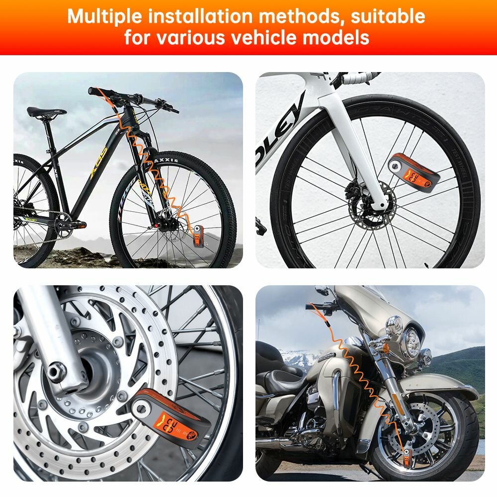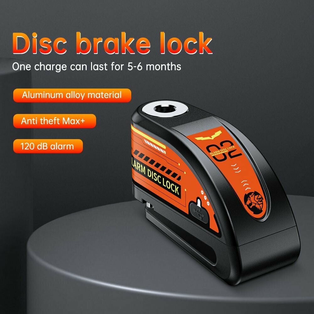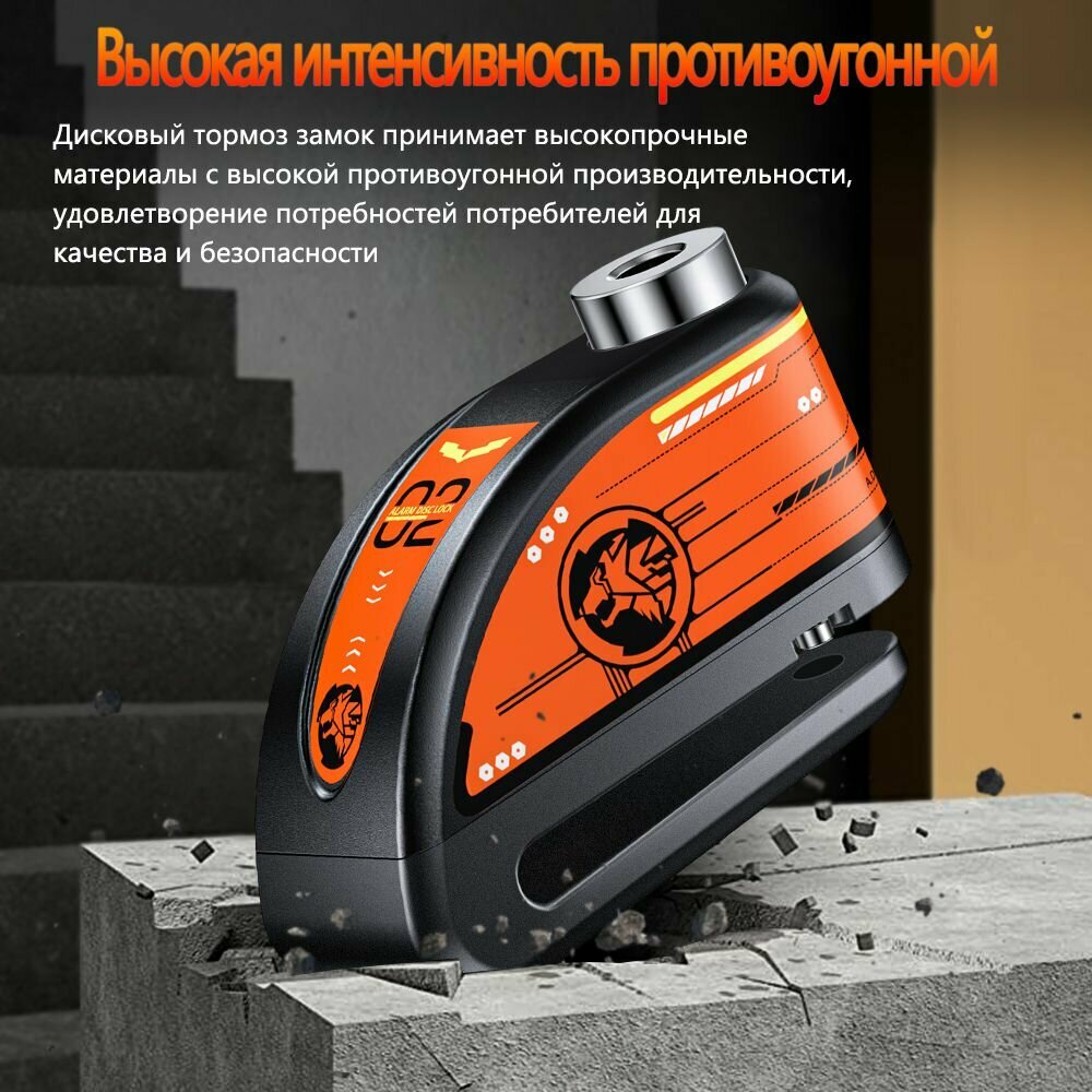 Мотоцикл/велосипед дисковый тормоз сигнализация замок, черный + оранжевая наклейка интересное: