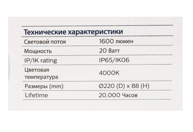 Светильник ЖКХ светодиодный Philips WT045C 20 Вт IP65, накладной, цвет белый