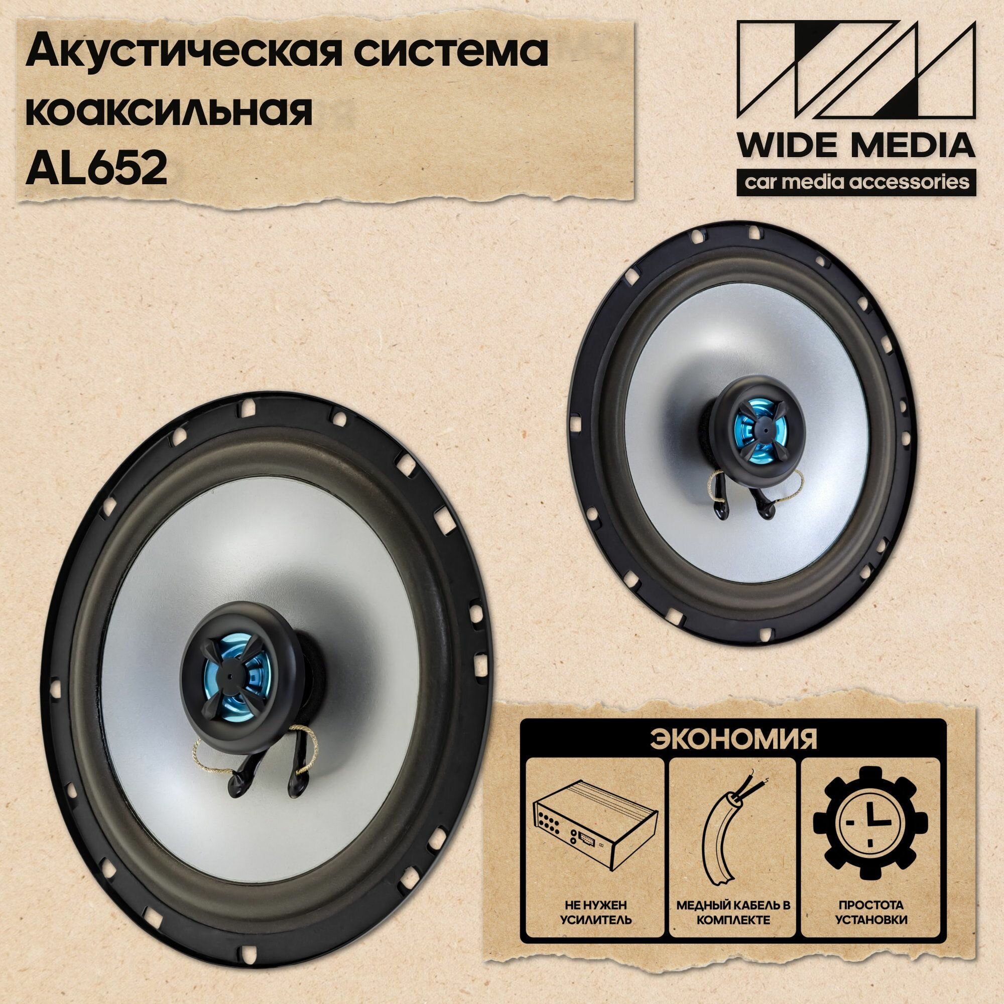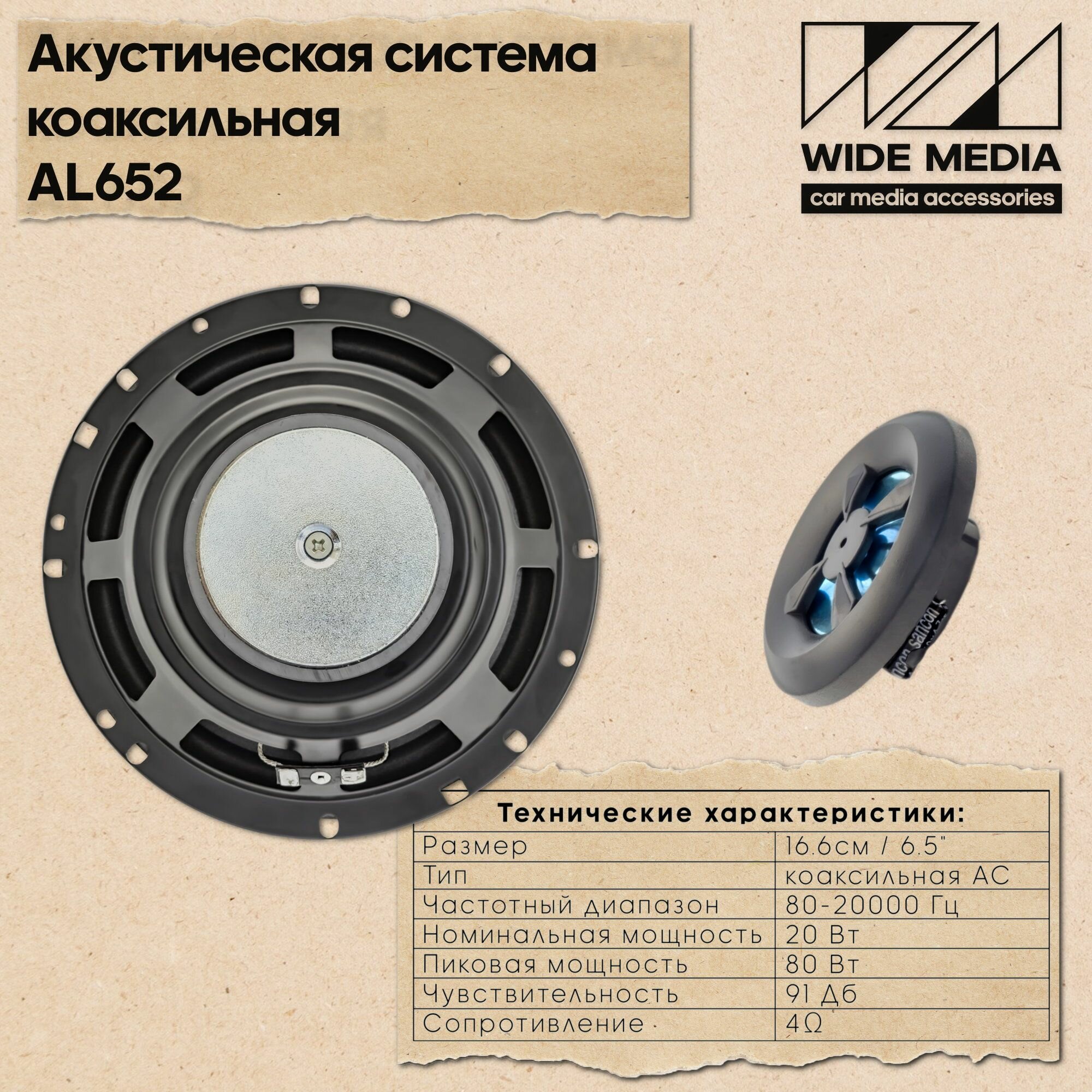 Акустическая система Wide Media AL652 коаксиальная 6,5" (16см, 20/80Вт, 4 Ом, 91Дб) интересное: