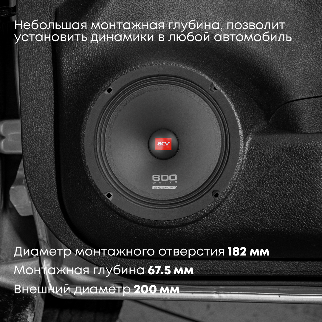 Колонки автомобильные ACV MS-8PRO (без решетки) 600Вт 95дБ 4Ом 20см (8дюйм) (ком:2кол.) среднечастотные однополосные интересное: