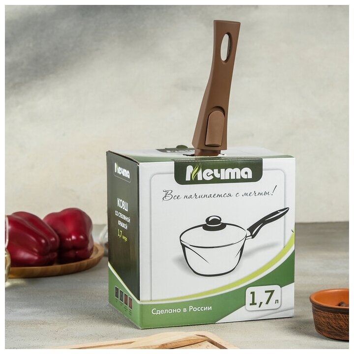 Ковш Мечта 1.7л Гранит с антипригарным покрытием со съемной ручкой 082806, гранит brown, 18, 1.7
