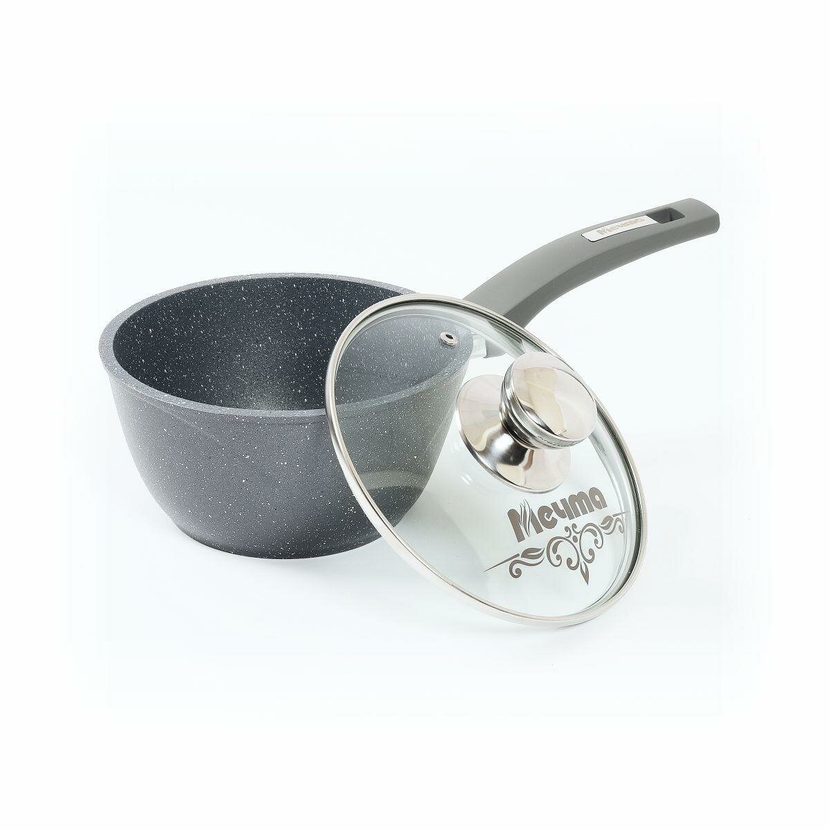 Ковш Мечта 1.2 л Гранит с антипригарным покрытием с несъемной ручкой и крышкой, НЕ индукционная
