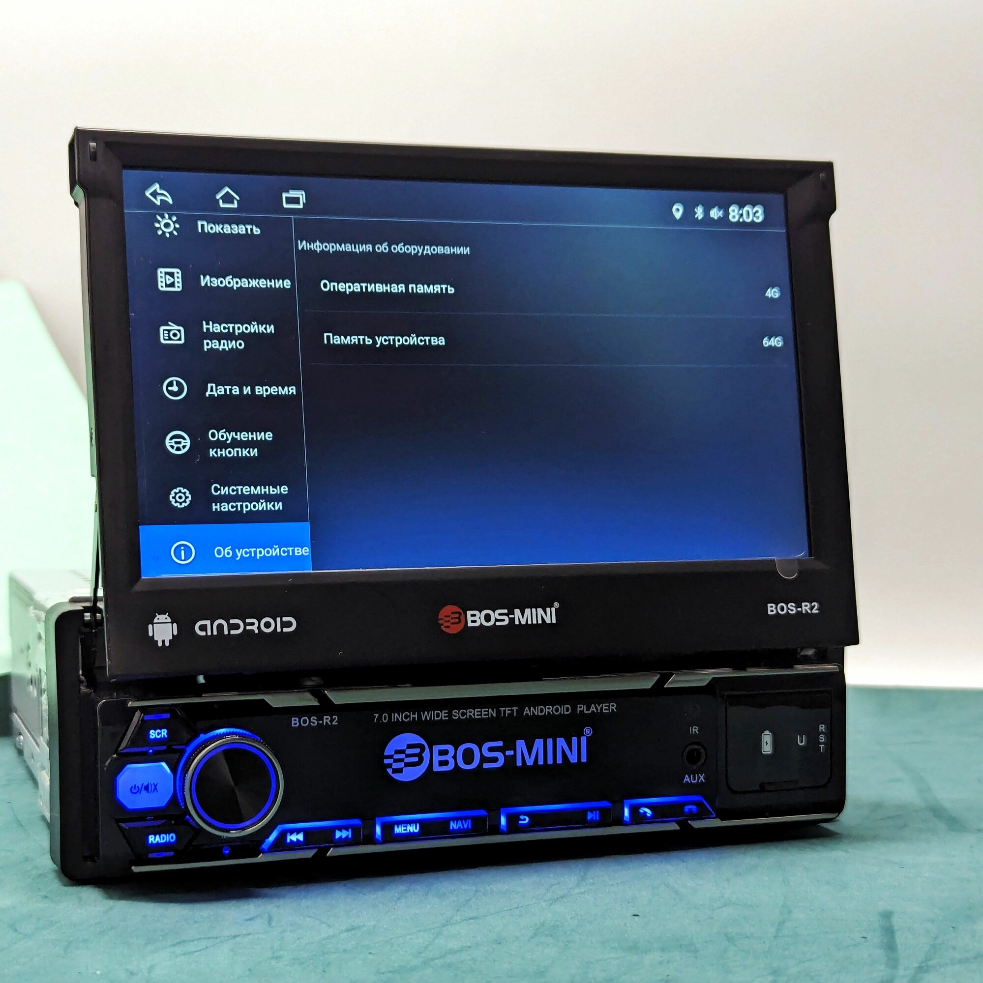 Автомагнитола 1DIN 4/64ГБ с выдвижным сенсорным экраном 7 дюймов (механический) на Android 12 с wi-fi / gps / на авто интересное:
