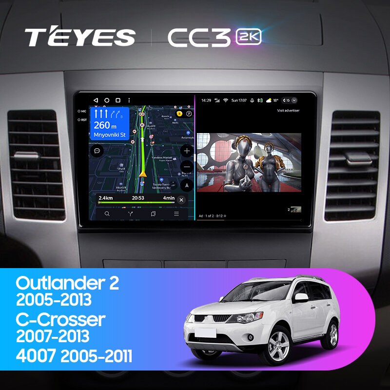 Купить Магнитола Teyes Mitsubishi Outlander 2/ Citroen C-Crosser/ Peugeot 4007 (Комплект А) CC3 2K 4/64ГБ голосовое управление В подарок!