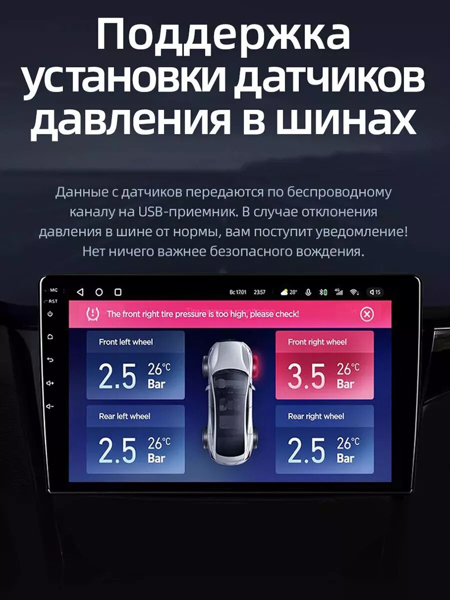 | Особенности магнитолы | автоматическая регулировка яркости дисплея, многоцветная подсветка, поддержка навигационных систем, поддержка приложений, подключение камеры заднего вида, эквалайзер |