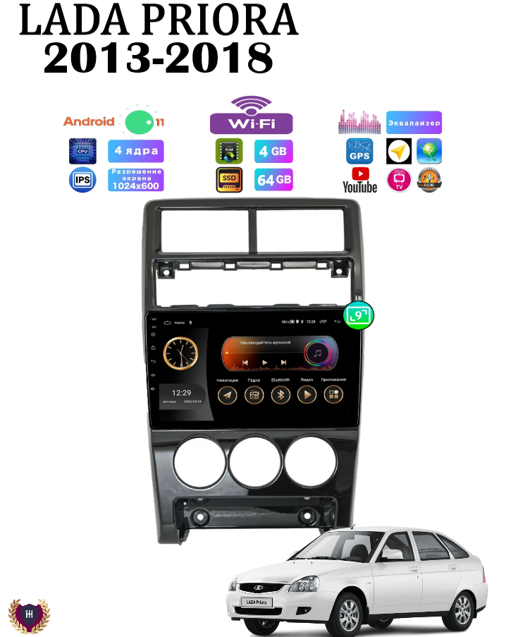 Купить Автомагнитола для Lada Priora (2013-2018), Android 11, 4/64 Gb, Wi-Fi, Bluetooth, GPS, Hands Free, разделение экрана, поддержка кнопок на руле