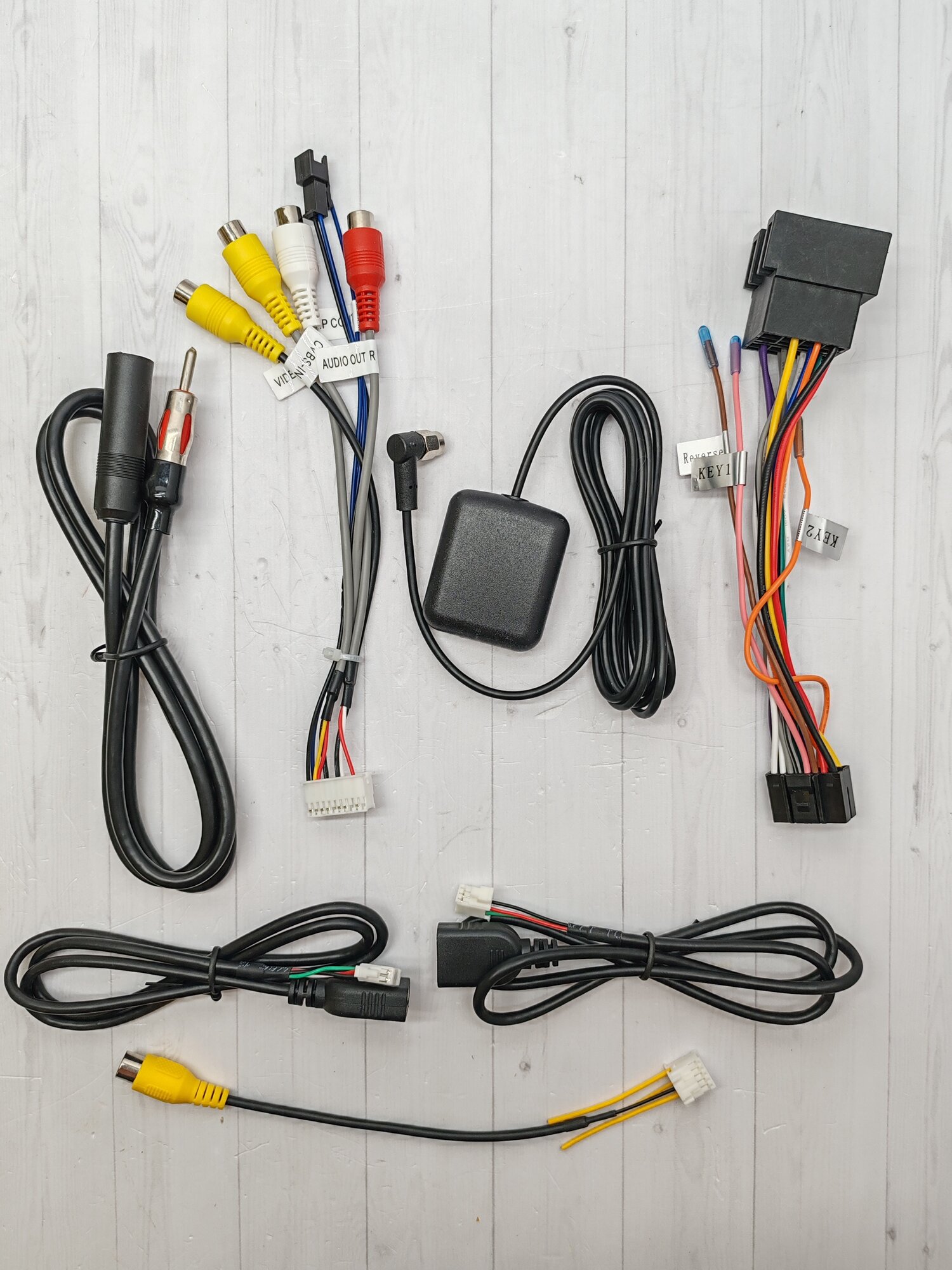 | Подробная комплектация | В комплекте переходная рамка,проводка питания, проводка звука RCA (линейные выходы и входы), кабель для камеры заднего вида (на нём расположены два проводка - это антенны вай-фай и блютуз), 2 выносных кабеля USB, GPS антенна для навигации. |