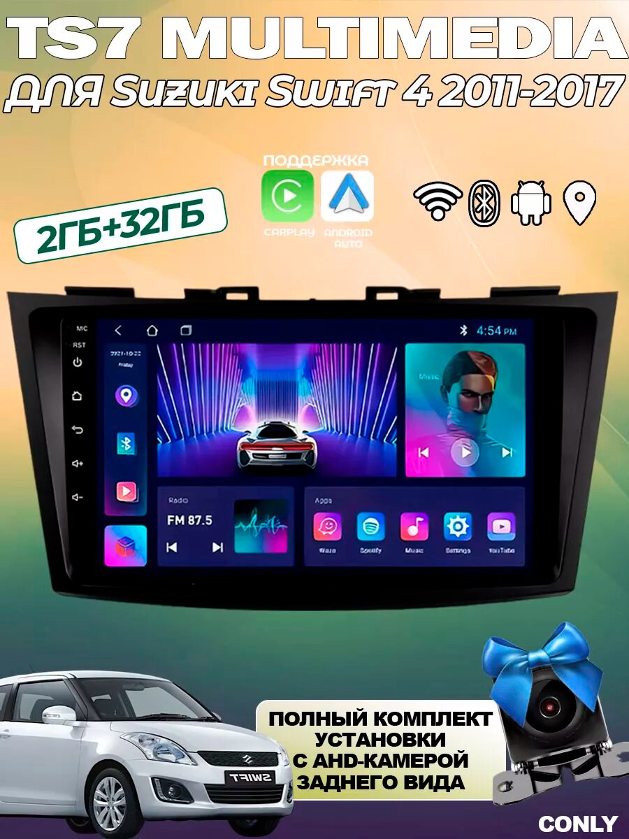 Магнитола для Suzuki Swift 4 2011-2017 TS7 Bluetooth, FM/AM, GPS, Сенсорная интересное: