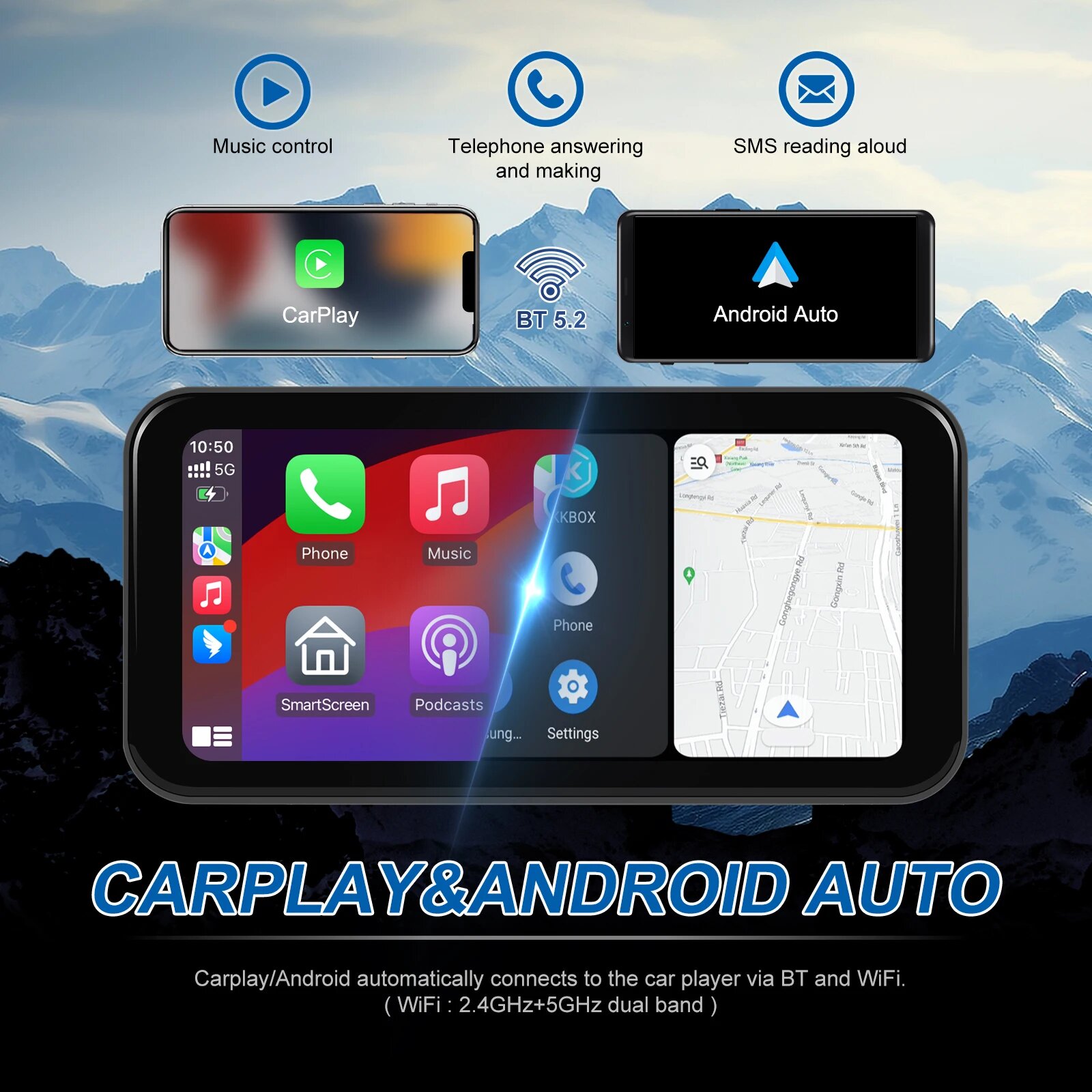 Podofo Мотоциклетная навигация Carplay 6,25 'Смарт-плеер Android Auto IP67 Водонепроницаемый Carplay Портативный мотоциклетный монитор двигателя, with CAM