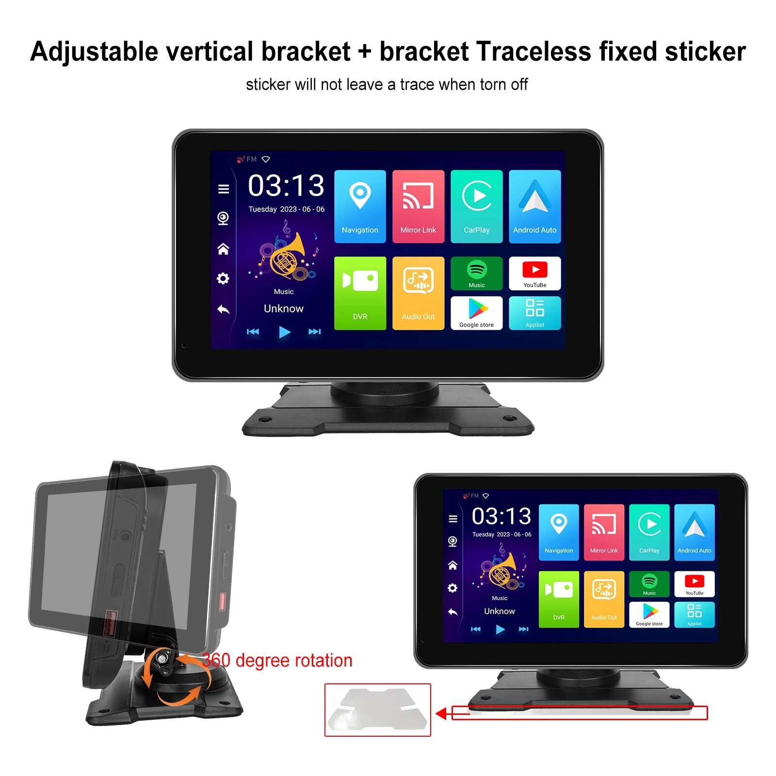 Podofo Carplay монитор Android 12 2 + 32G Android Авто экран WIFI GPS портативный смарт-плеер с поддержкой задней камеры для универсального BMW, 7inch with Cam