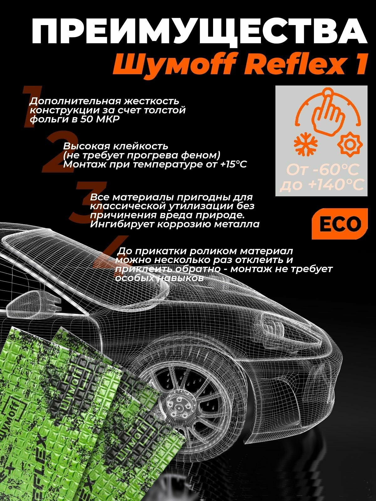 Шумофф Reflex 1 - 45 листов 37.5 см х 23 см Виброизоляция для автомобиля - для потолка, дверей, капота, багажника - толщина 1.6 мм