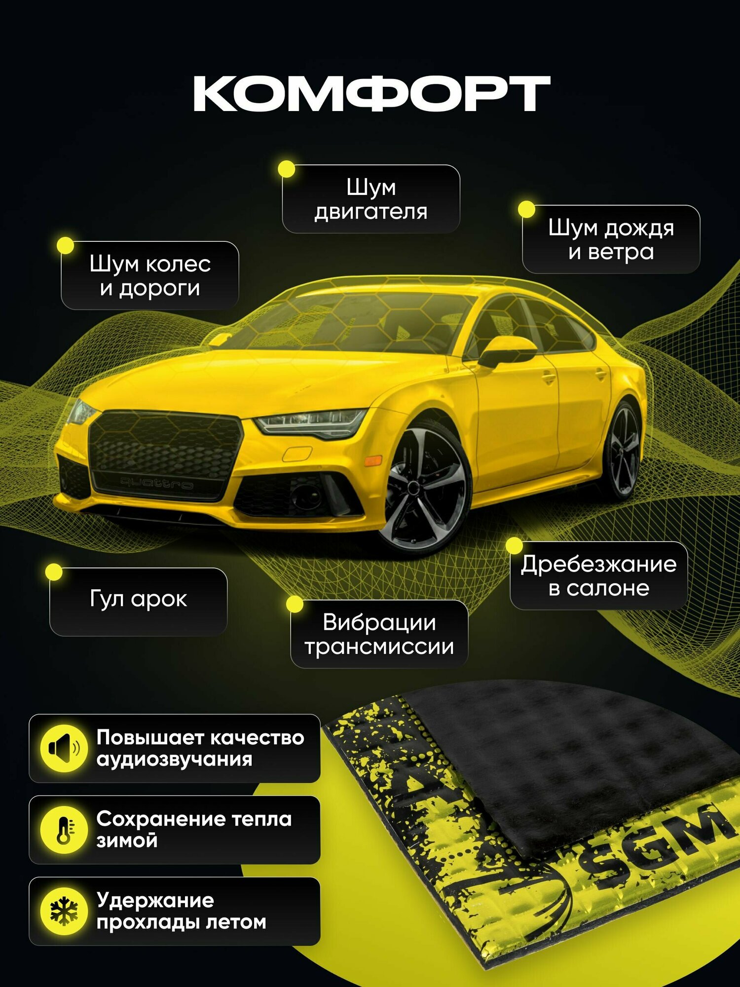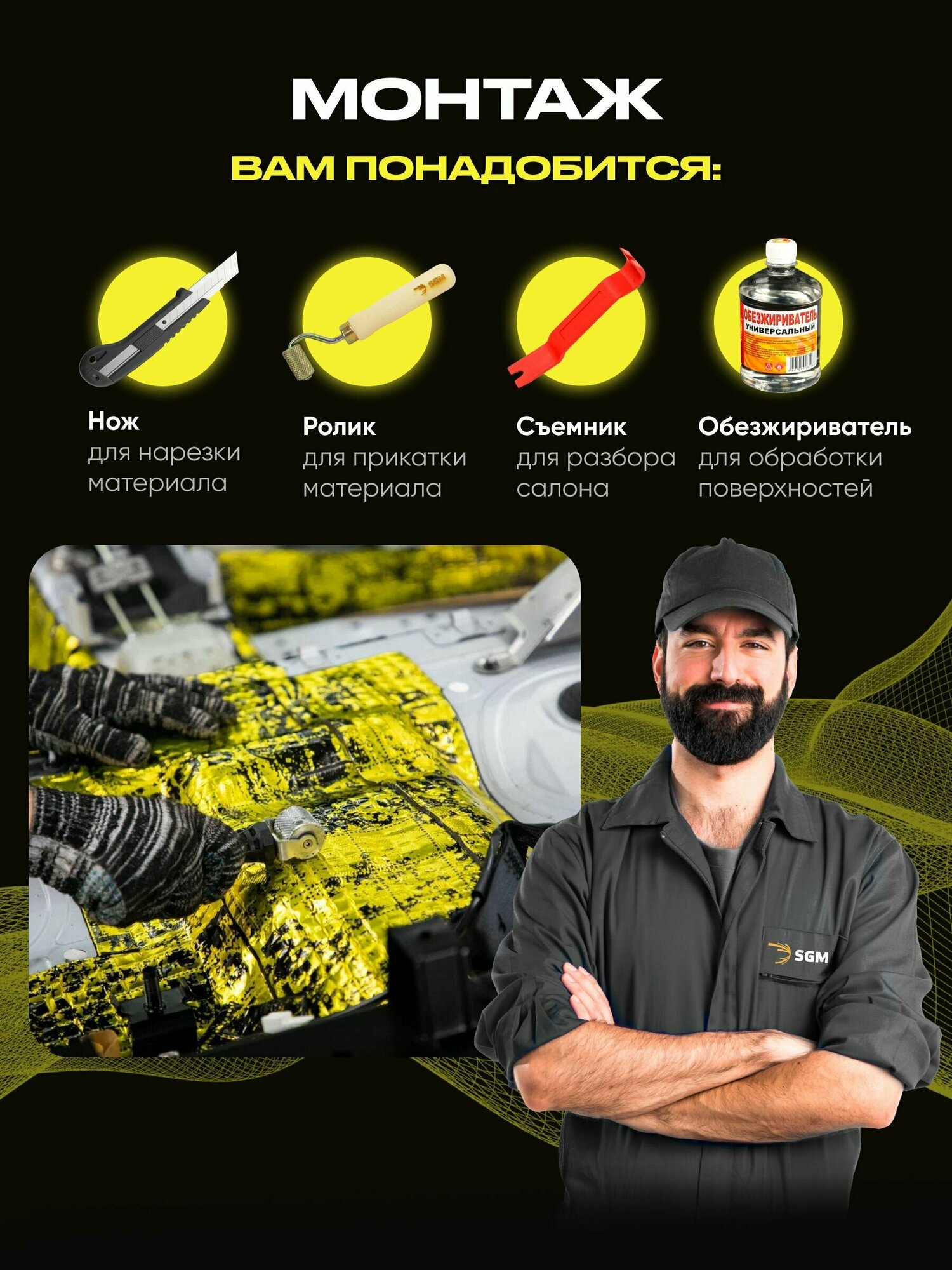 Набор шумоизоляции для автомобиля SGM Альфа 2 с роликом, 30 листов/Виброизоляция для салона, пола и дверей машины интересное: